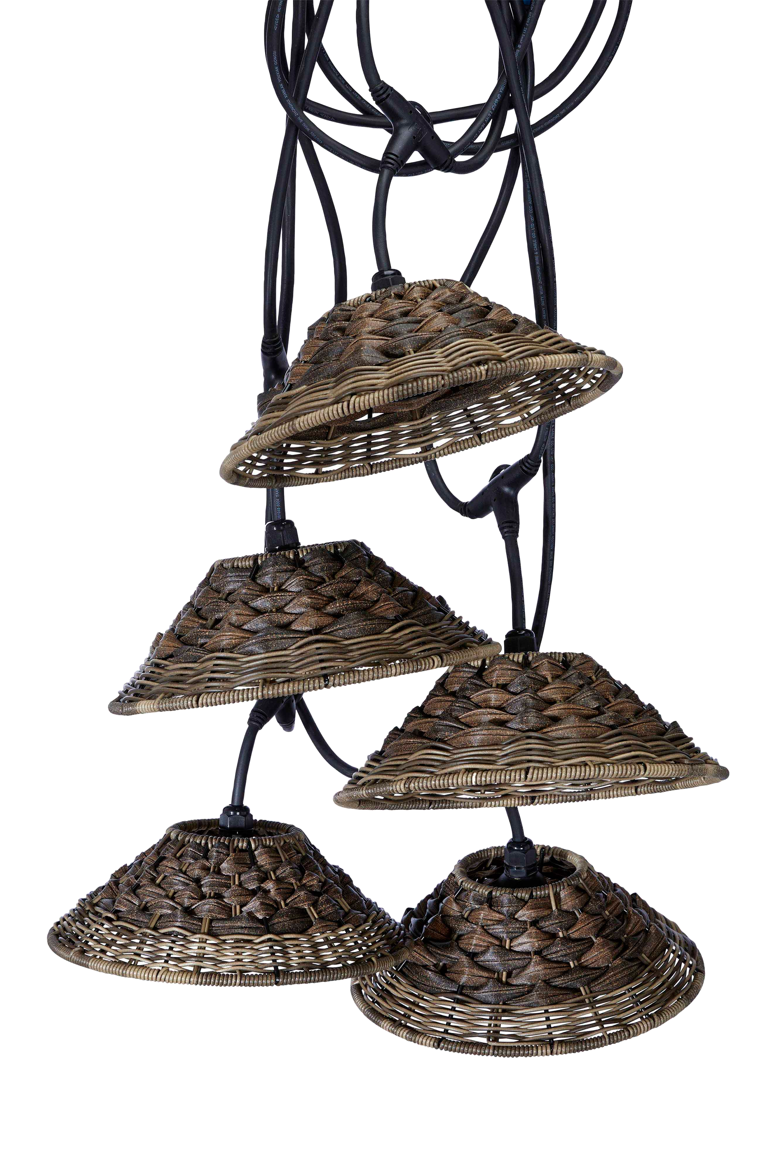 Flex Out -valosarja ulkokäyttöön (IP44). Sisältää viisi E27-lampunpidikettä, enintään 5x15 W. Valosarja sisältää viisi luonnonruskeaa Lisen-varjostinta. Lisen-varjostimissa on klassinen koripunonta, jossa polyrottinki ja vesihyasintti luovat yhdessä kauniin rustiikkisen ilmeen. Varjostimen halkaisija 27 cm ja korkeus 9 cm. Kokonaispituus 6,5 m. Etäisyys ensimmäiseen lampunpidikkeeseen 2,5 m, sen jälkeen lampunpidikkeiden välinen etäisyys 80 cm. Etäisyys T-haarasta varjostimen renkaaseen 15 cm. Ulkokäyttöön sopivat E27-valonlähteet tilataan erikseen.