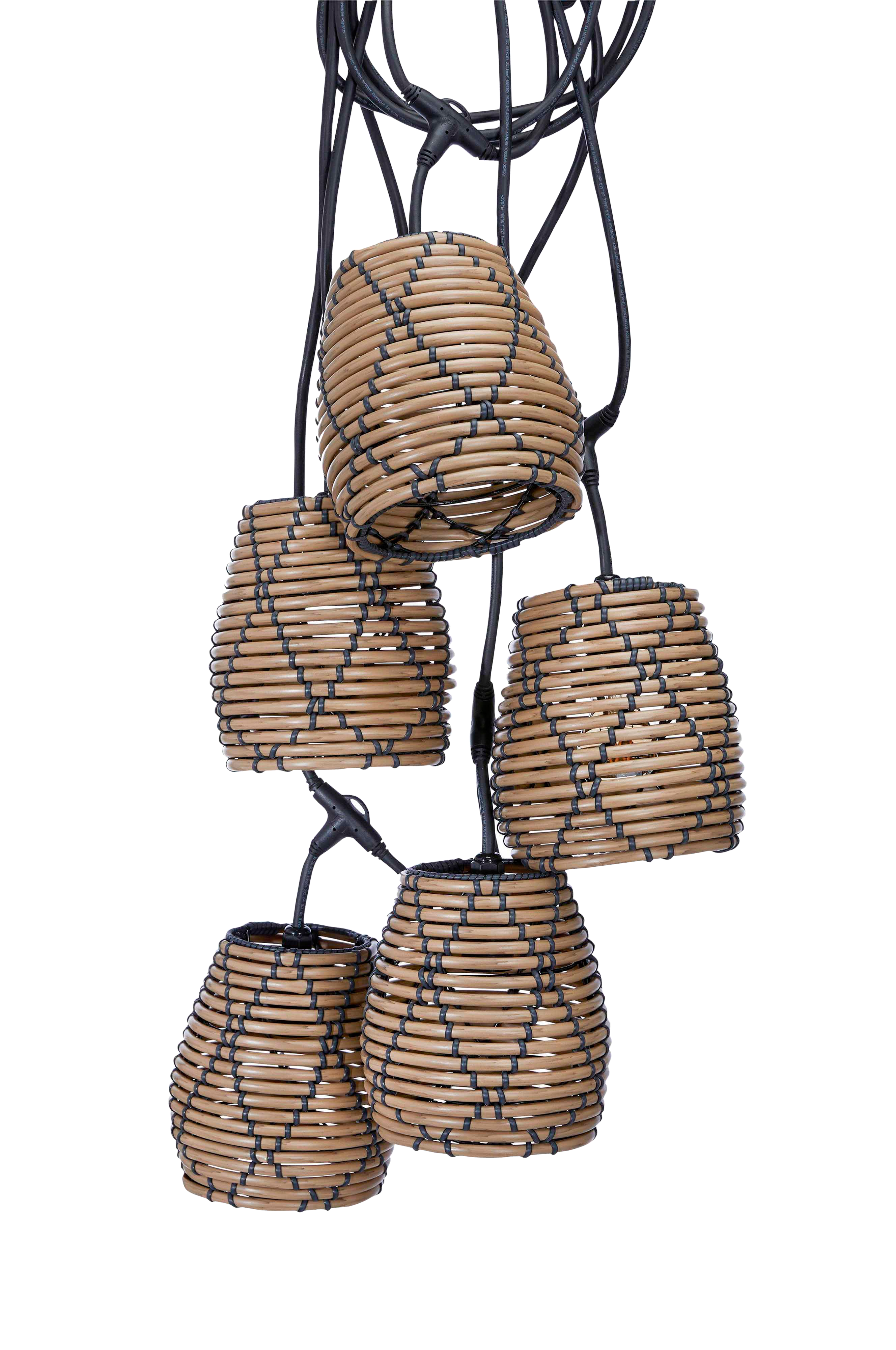Flex Out -valosarja ulkokäyttöön (IP44). Sisältää viisi E27-lampunpidikettä, enintään 5x15 W. Valosarjaan kuuluu viisi luonnonväristä/mustaa Lollo-varjostinta. Lollo-varjostimet on punottu pyöreästä ja paksuhkosta polyrottingista. Musta kuvio luo modernin ilmeen. Varjostimen halkaisija 18 cm ja korkeus 20 cm. Kokonaispituus 6,5 m. Etäisyys ensimmäiseen lampunpidikkeeseen 2,5 m, sen jälkeen lampunpidikkeiden välinen etäisyys 80 cm. Etäisyys T-haarasta varjostimen renkaaseen 15 cm. Ulkokäyttöön sopivat E27-valonlähteet tilataan erikseen.