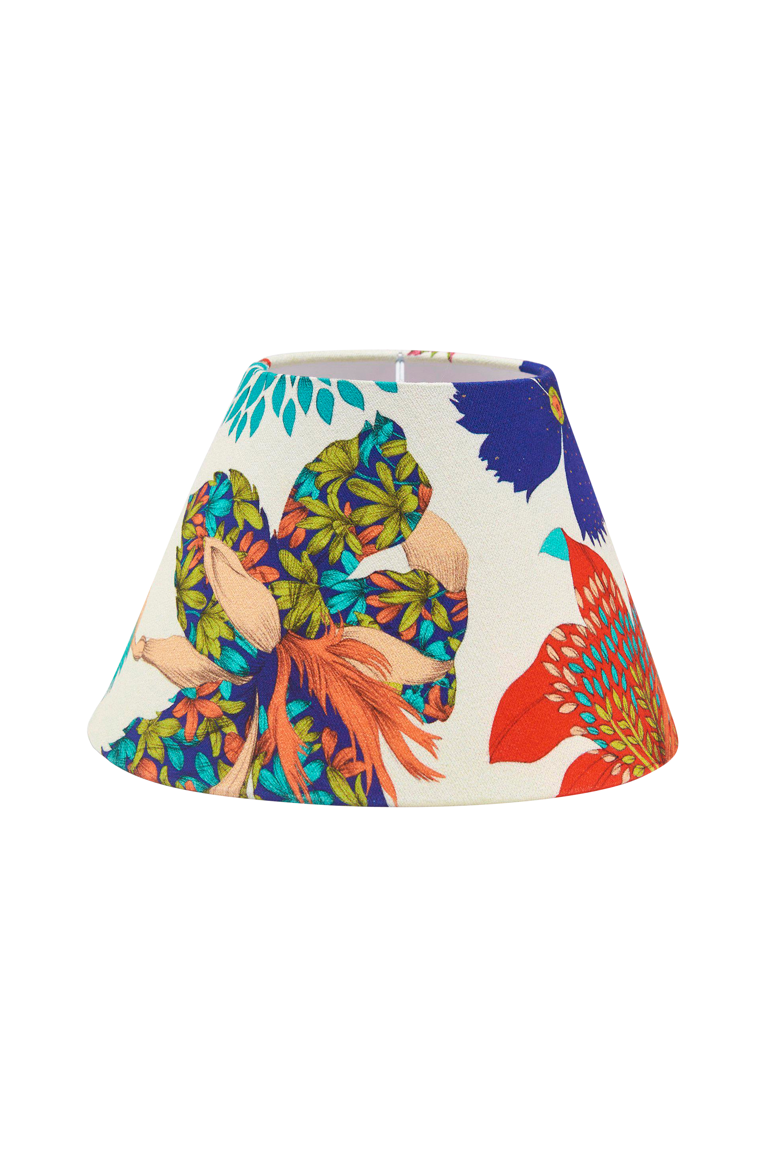 Empire-lampunvarjostin kuviollista kangasta. Kartiomainen varjostin luo tyylikkään ilmeen ja antaa kauniin valon. Käytä mielellään opaalia valonlähdettä, joka luo kauniin valon varjostimeen. Varjostimessa on E27-rengaskiinnike. E27-valonlähde tilattavissa erikseen. Korkeus 23 cm, leveys alhaalta 35 cm, leveys ylhäältä 16 cm.