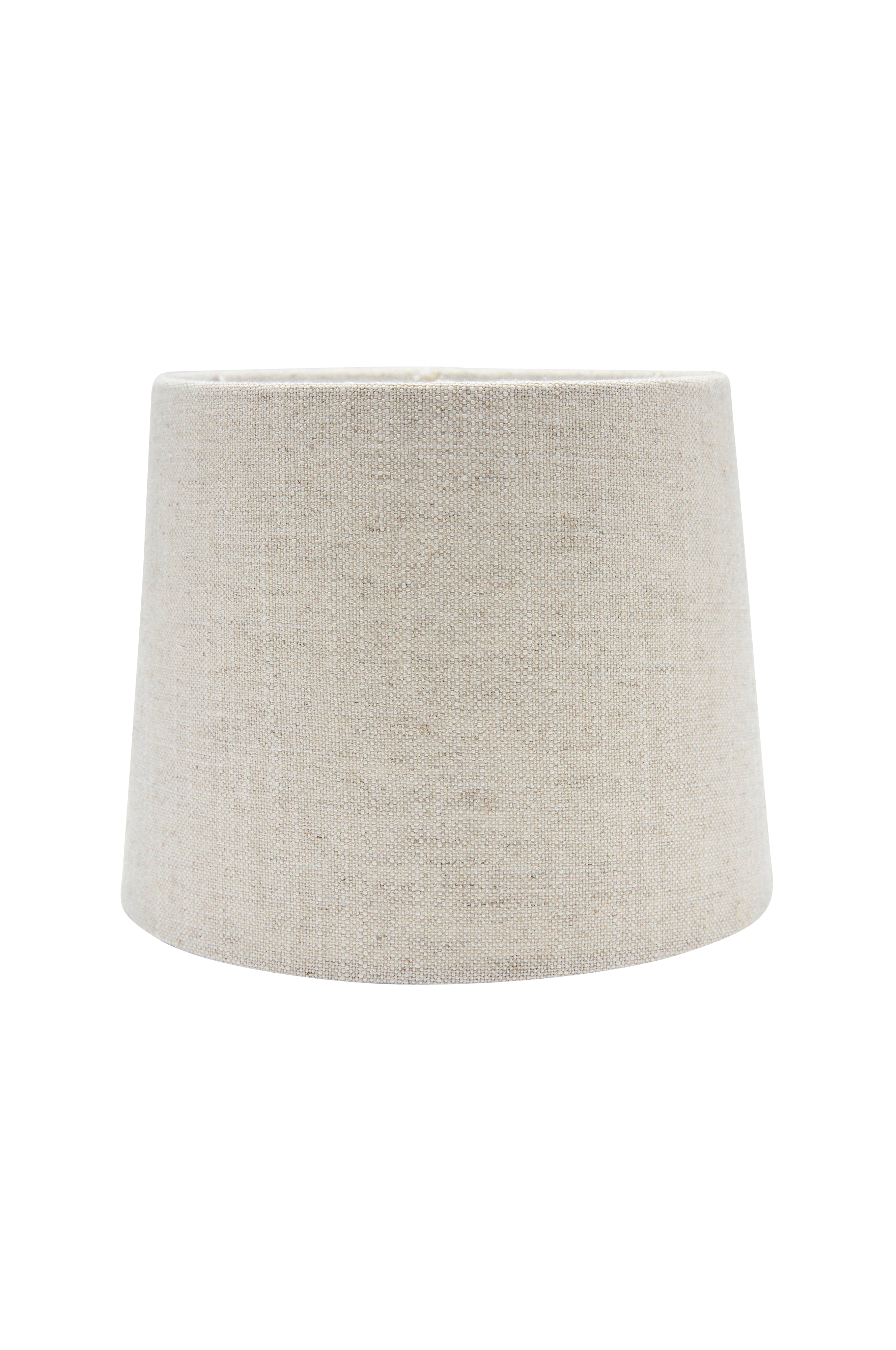 Sofia-varjostin kaunista pellavamaista, mattapintaista kangasta. Pyöreässä varjostimessa on valo sisällä ja E27-rengaskiinnike n. 3 cm varjostimen alareunasta. Varjostin on helppo yhdistää erilaisiin suurempiin lampunjalkoihin ja sopii myös lattiavalaisimeksi. Korkeus 25 cm, leveys alhaalta 35 cm ja ylhäältä 30 cm.