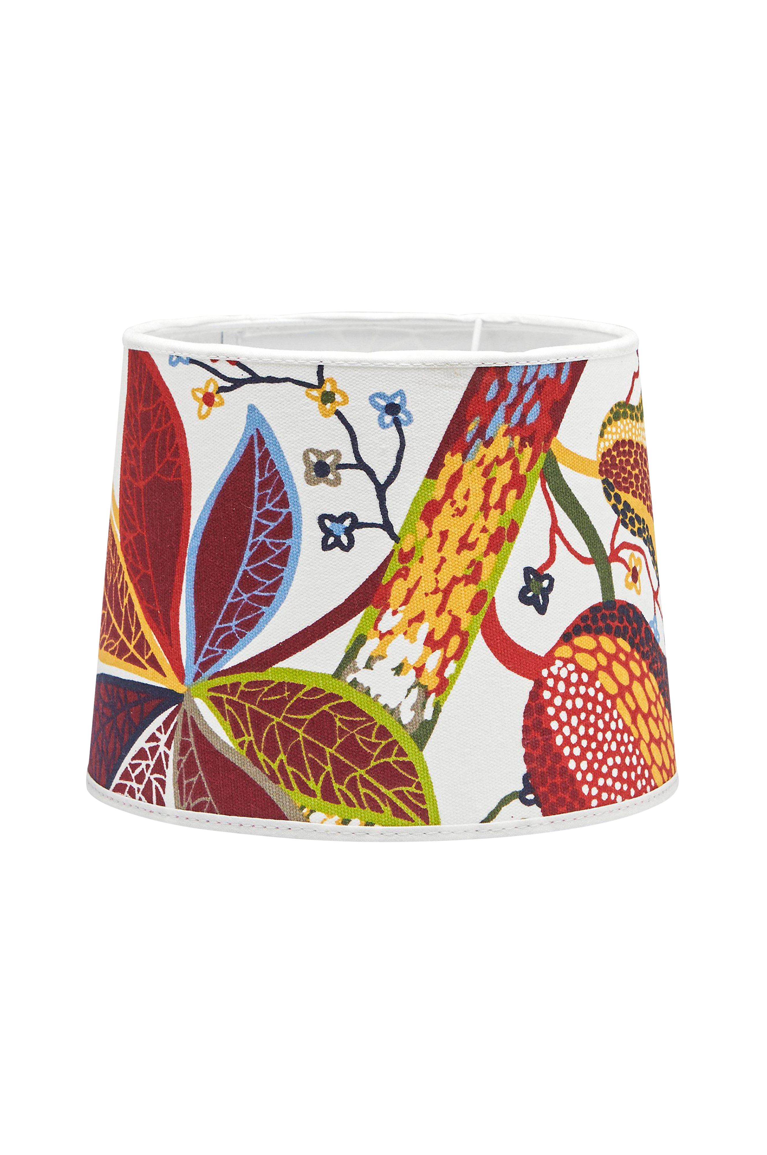 Sofia-varjostin puuvillakangasta, jossa kaunis kuvio. Pyöreä varjostin, jossa E27-rengaskiinnike. Korkeus 18 cm, leveys alhaalta 25 cm, leveys ylhäältä 22 cm.