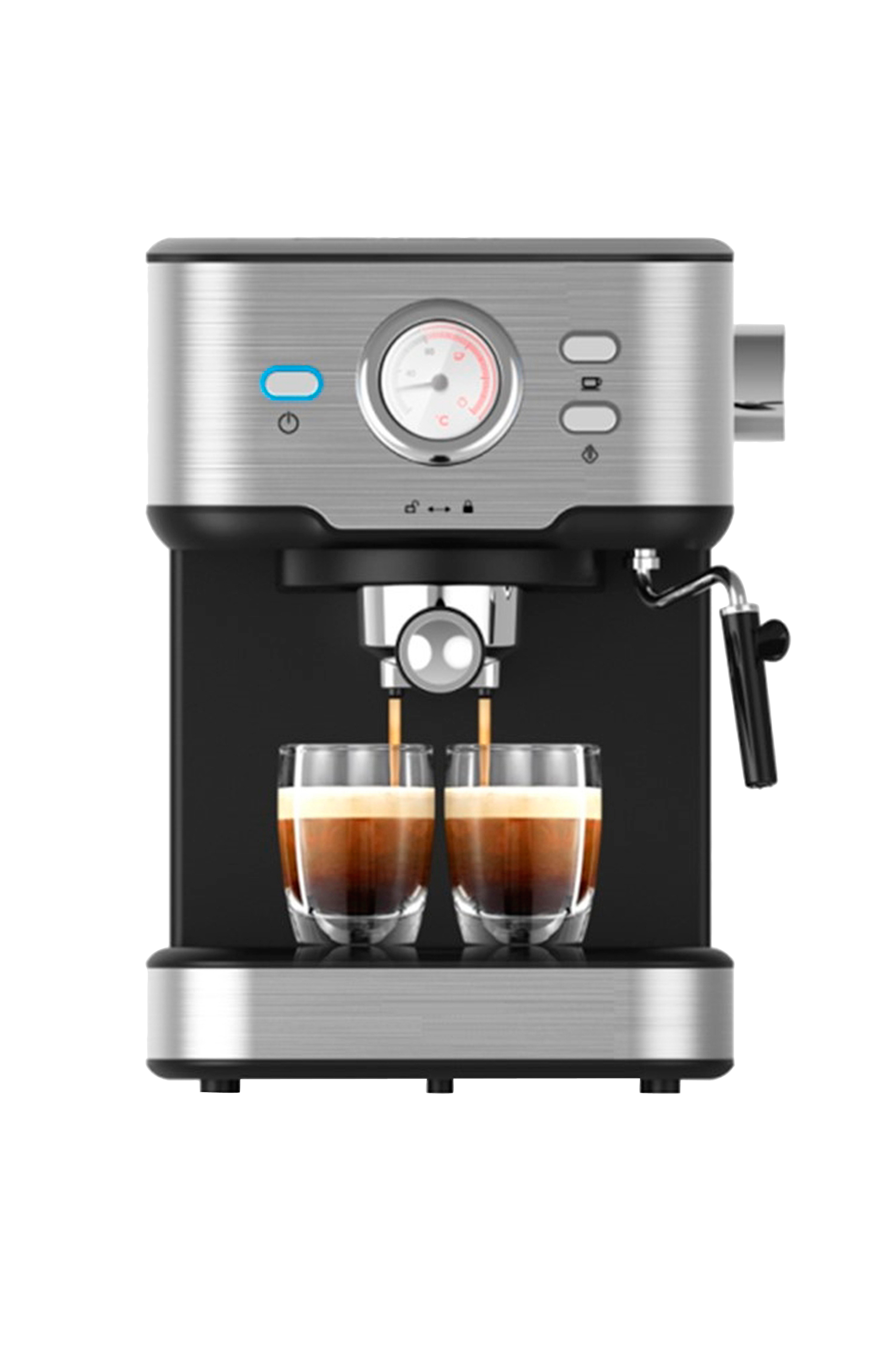 Valmistaa kaksi kupillista hyvää espressoa samanaikaisesti. Suuttimen avulla voit valmistaa myös maitokahveja, kuten cappuccinoa, latte macchiatoa ja espresso macchiatoa.