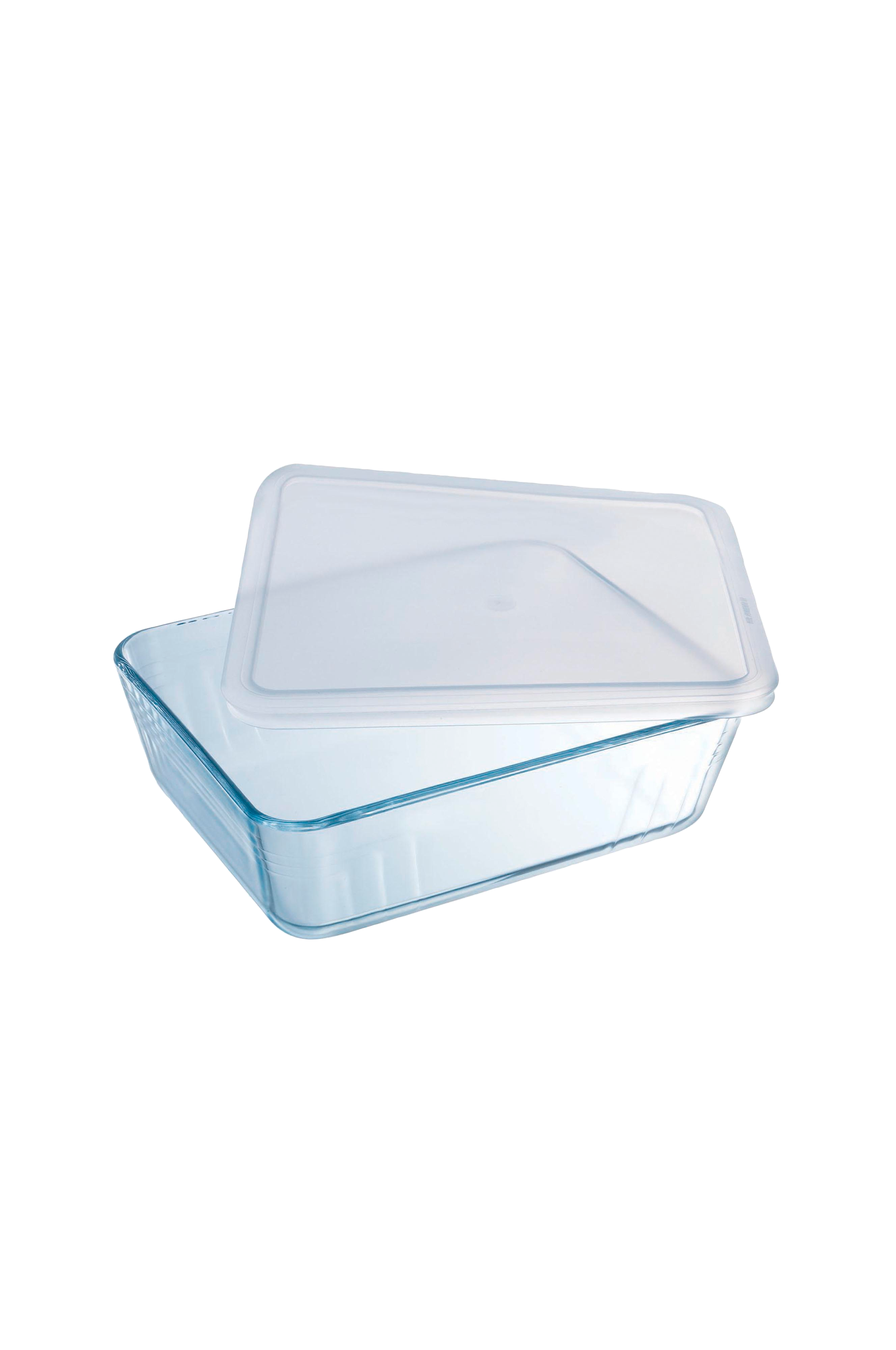Pyrex Pitkulainen vuoka ja muovikansi 25x20 cm / 2,6 L