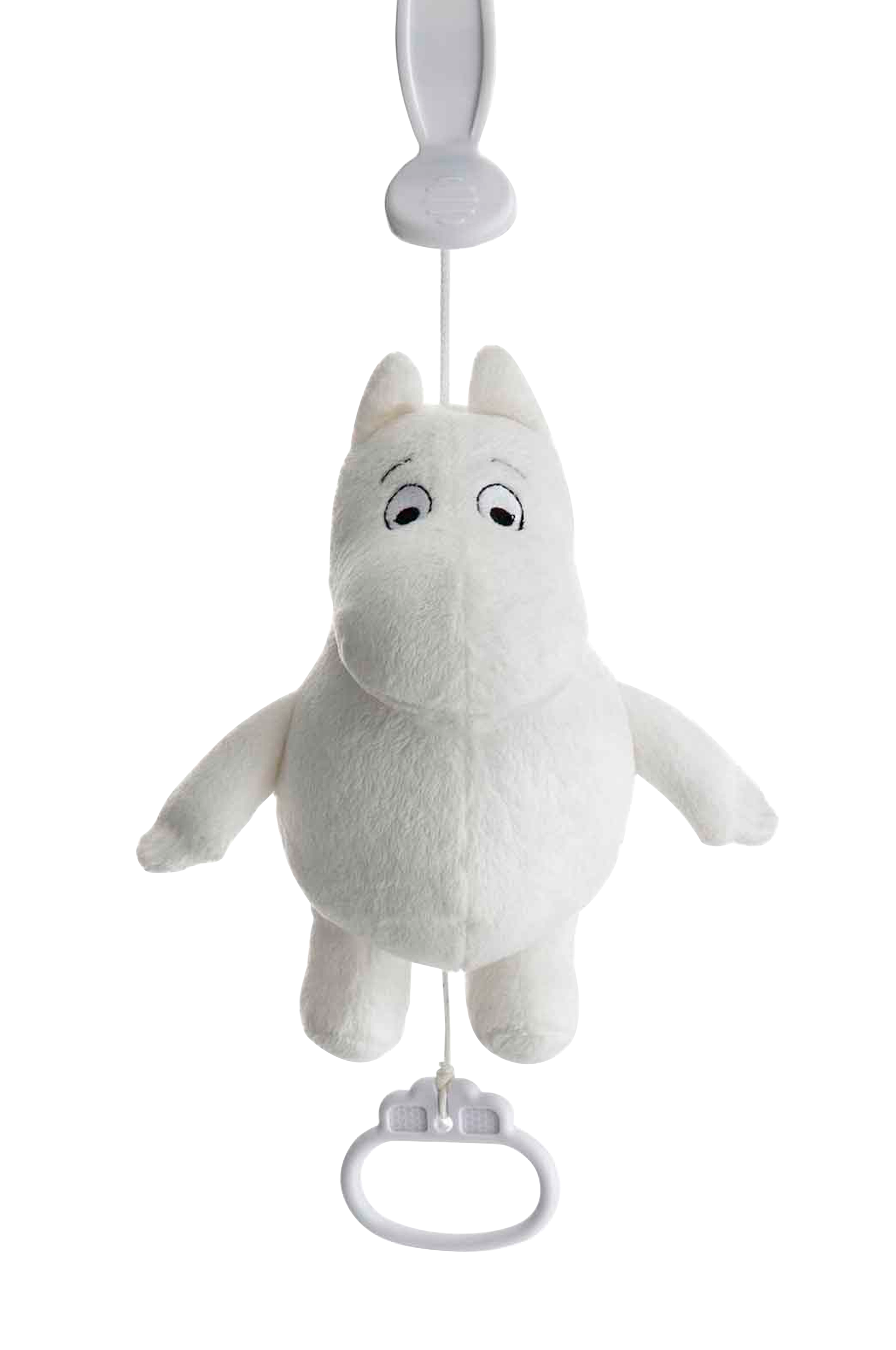 Muumi-soittorasia, joka soittaa Brahmsin kehtolaulua. Kiinnitä pinnasänkyyn tai lastenvaunuihin. Kehittää lapsen musiikillisia aisteja leikin ja laulun kautta yhdessä vanhemman kanssa. Soittorasia toimii narusta vetämällä. Lasta ei saa jättää yksin siten, että naru on lähettyvillä.