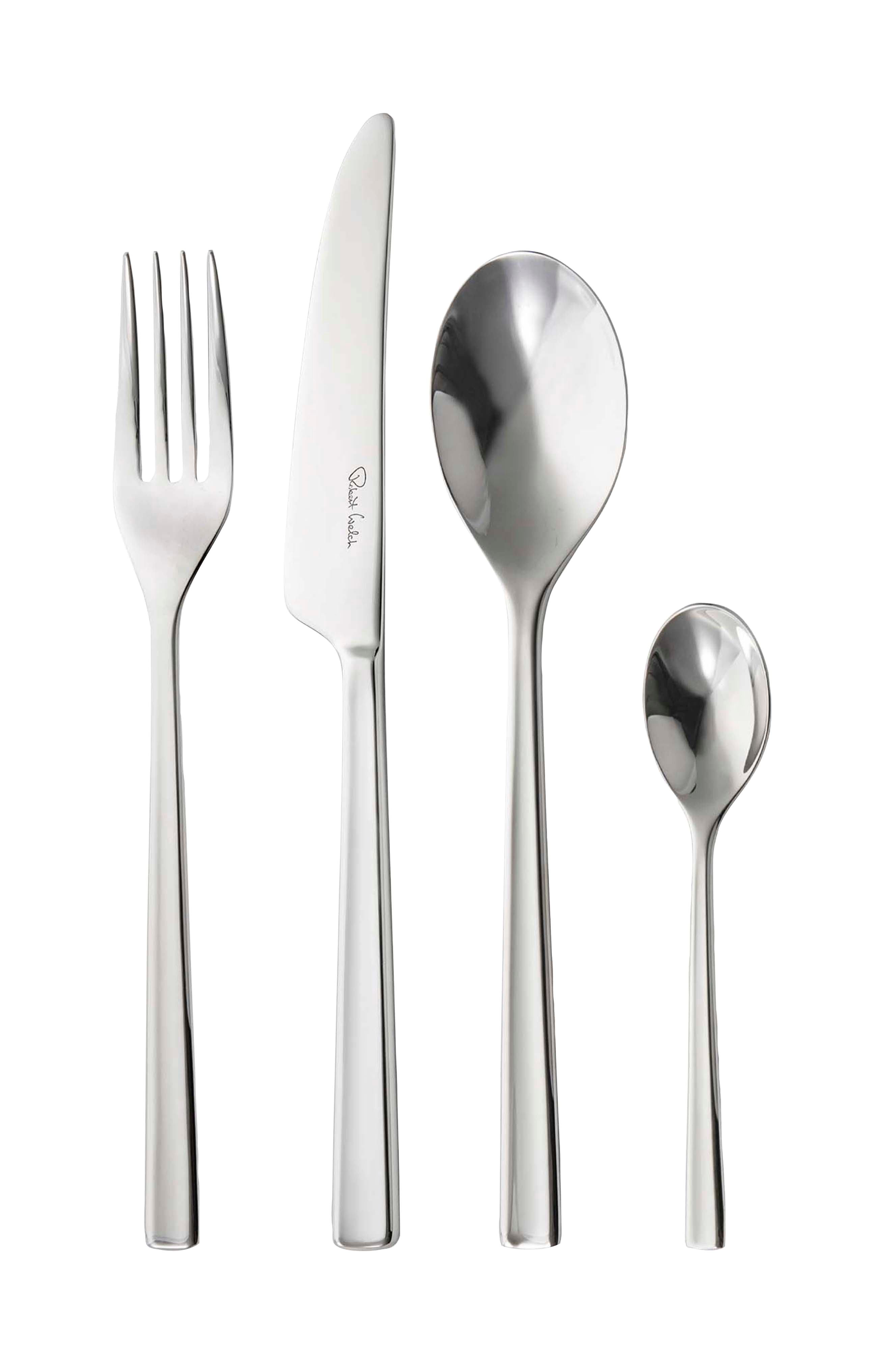 Suoralinjainen 24-osainen aterinsetti on saanut vaikutteita modernista arkkitehtuurista. Robert Welchin Blockley-sarjan tasapainoisissa suoralinjaisissa aterimissa on koko varren pituudelta loiva syvennys, joka heijastaa valoa kauniisti. Lusikat ja haarukat on valmistettu laadukkaasta ruostumattomasta 18/10-teräksestä. Veitsien terät on valmistettu karkaistusta ruostumattomasta erikoisteräksestä, mikä takaa parhaan mahdollisen leikkuutehon. Kaikki osat ovat konepesun kestäviä ja niillä on elinikäinen takuu.