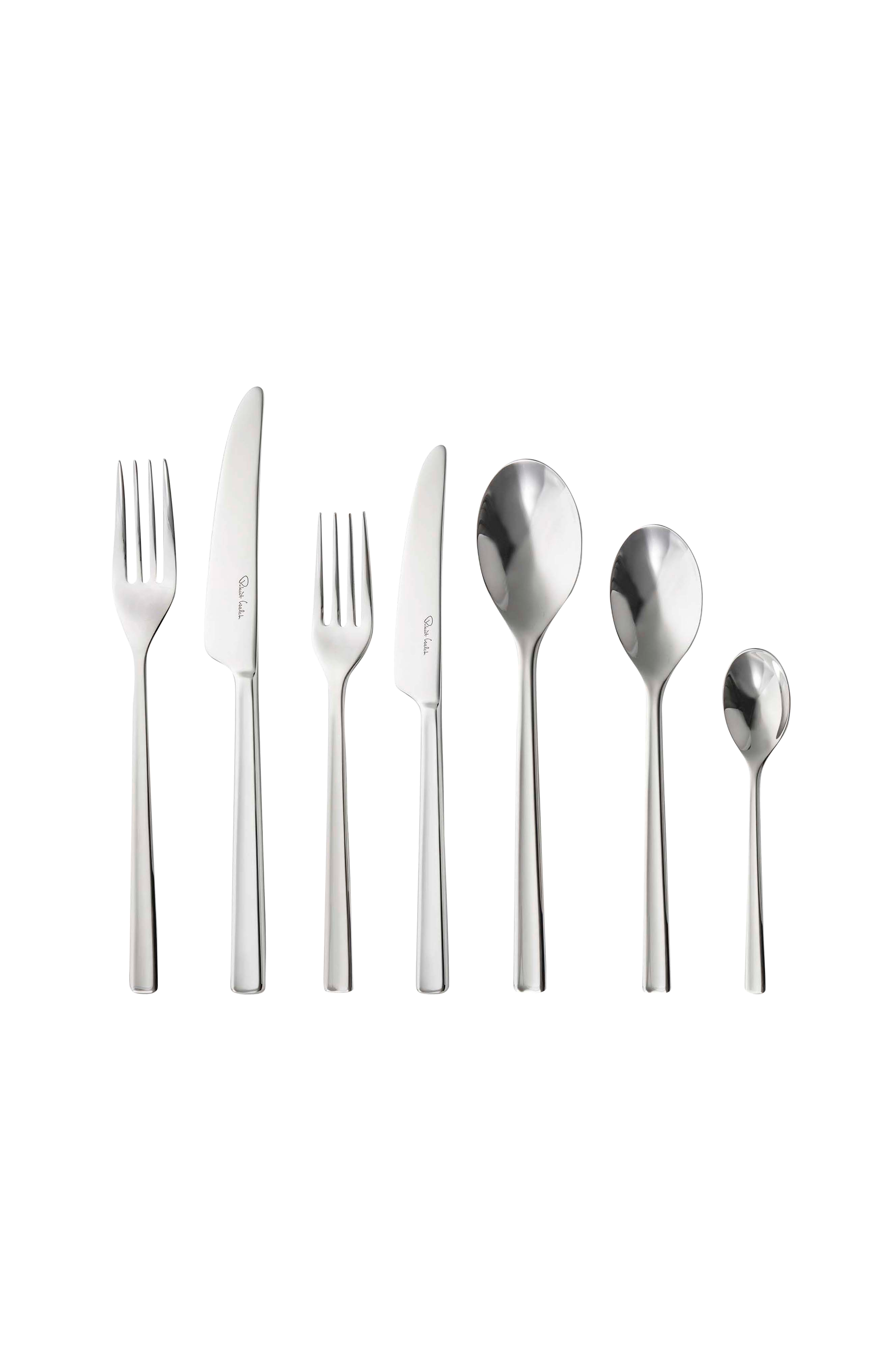 Suoralinjainen 56-osainen aterinsetti on saanut vaikutteita modernista arkkitehtuurista. Robert Welchin Blockley-sarjan tasapainoisissa suoralinjaisissa aterimissa on koko varren pituudelta loiva syvennys, joka heijastaa valoa kauniisti. Lusikat ja haarukat on valmistettu laadukkaasta ruostumattomasta 18/10-teräksestä. Veitsien terät on valmistettu karkaistusta ruostumattomasta erikoisteräksestä, mikä takaa parhaan mahdollisen leikkuutehon. Kaikki osat ovat konepesun kestäviä ja niillä on elinikäinen takuu.