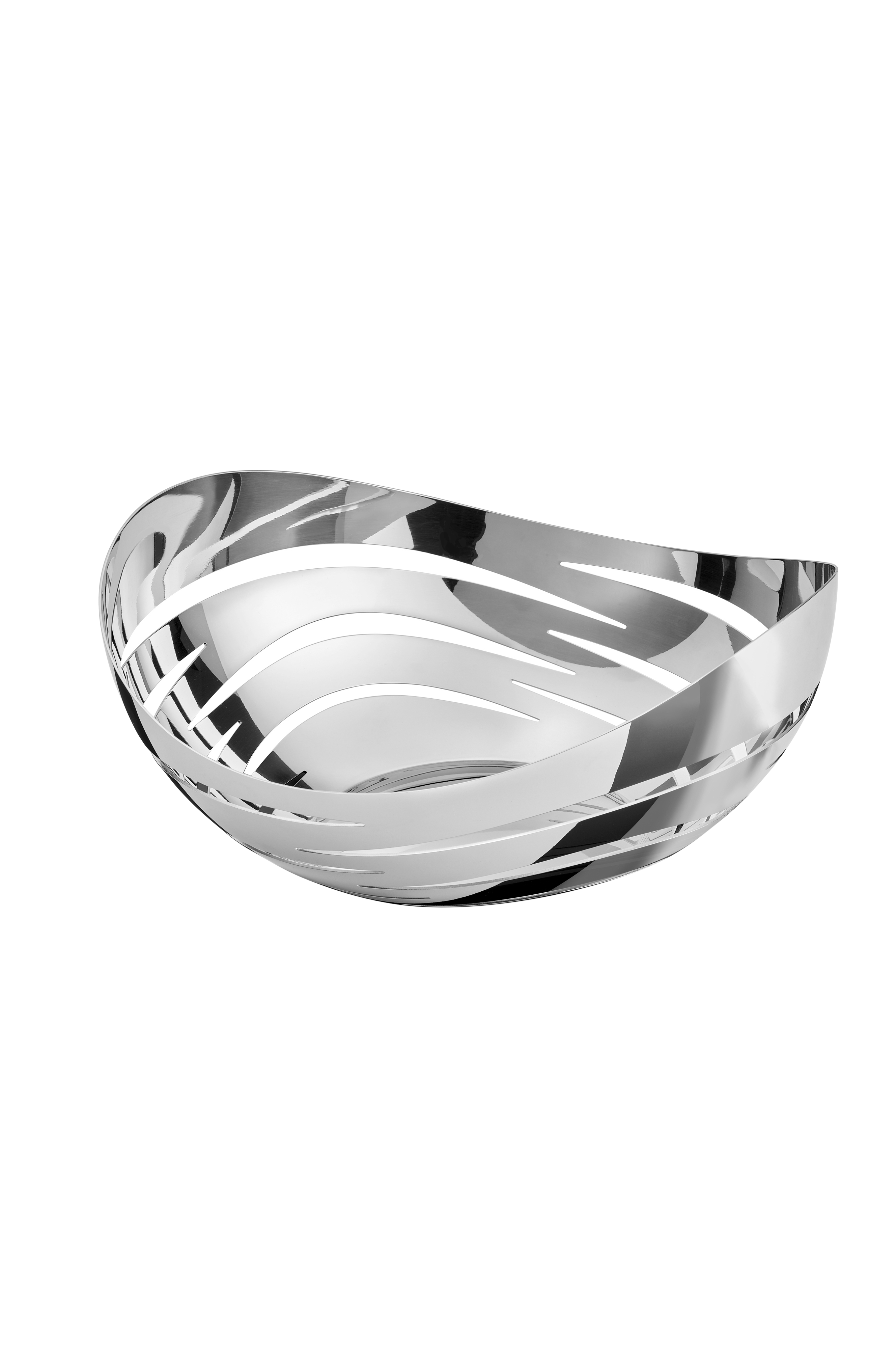 Robert Welchin Drift-malliston elegantti leipäkori. Leipäkorin pinnassa on aukkoja, jotka antavat lämpimän leivän, sämpylöiden tai leivonnaisten höyrytä ilman, että korin pinta kostuu. Kun kulho on tyhjä, leikatut osiot luovat koristeellisen valojen leikin, joka antaa mielikuvan virtaavasta liikkeestä. Leipäkori on valmistettu laadukkaasta 18/10 ruostumattomasta teräksestä, jossa on peilikirkas pinta.