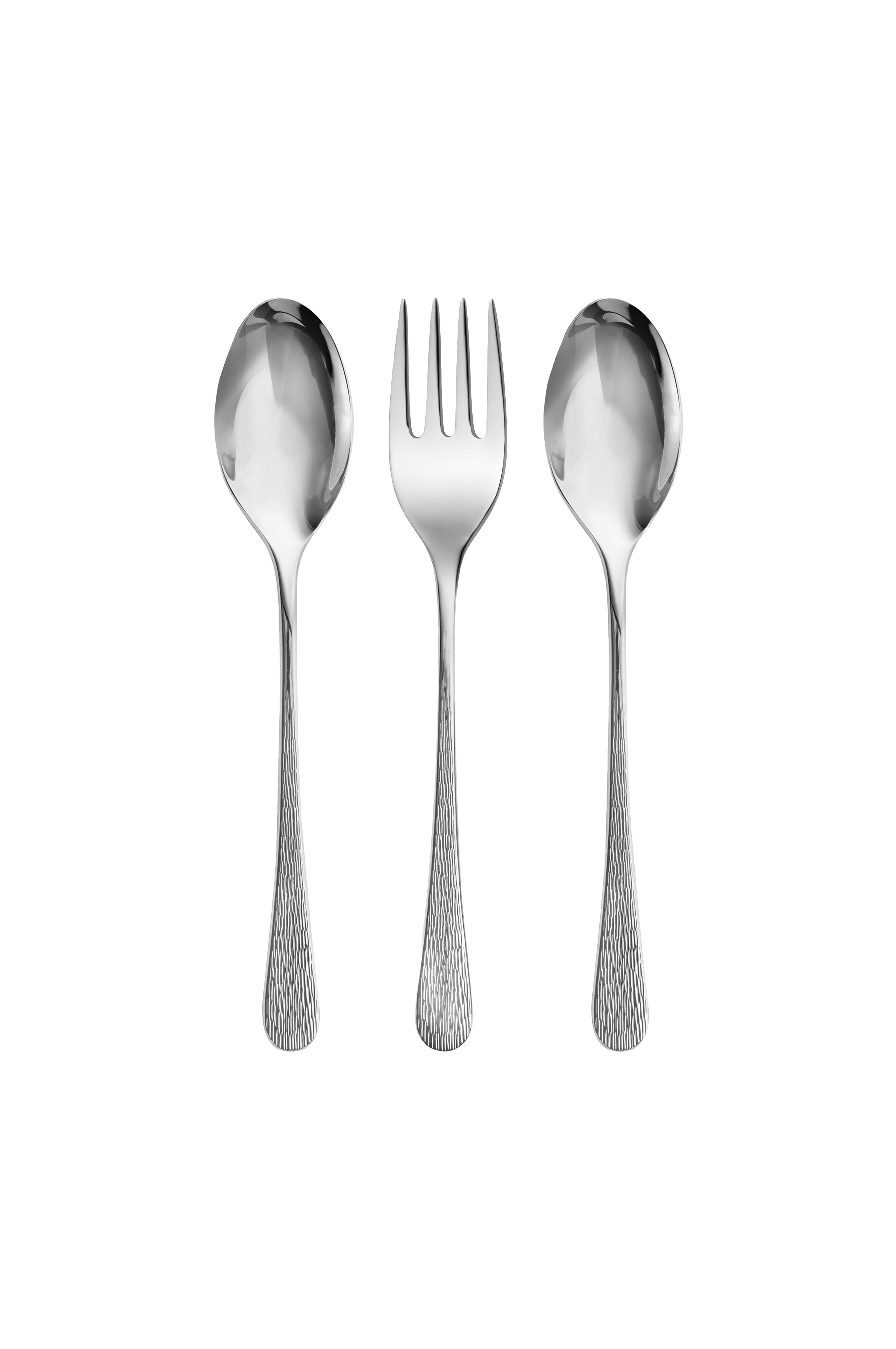 Robert Welchin Skye-sarjan ottimet, 2 tarjoilulusikkaa ja 1 tarjoiluhaarukka. Ohut, sulavalinjainen ja tasapainoinen profiili tekee Skye-aterimista mukavat käyttää. Skye-aterimien varsien pintakuvioinnissa on vaikutteita perinteisestä hopeasepän tekniikasta. Lusikat ja haarukka ovat korkealaatuista 18/10 ruostumatonta terästä. Kaikki osat ovat konepesun kestäviä ja niillä on elinikäinen takuu.