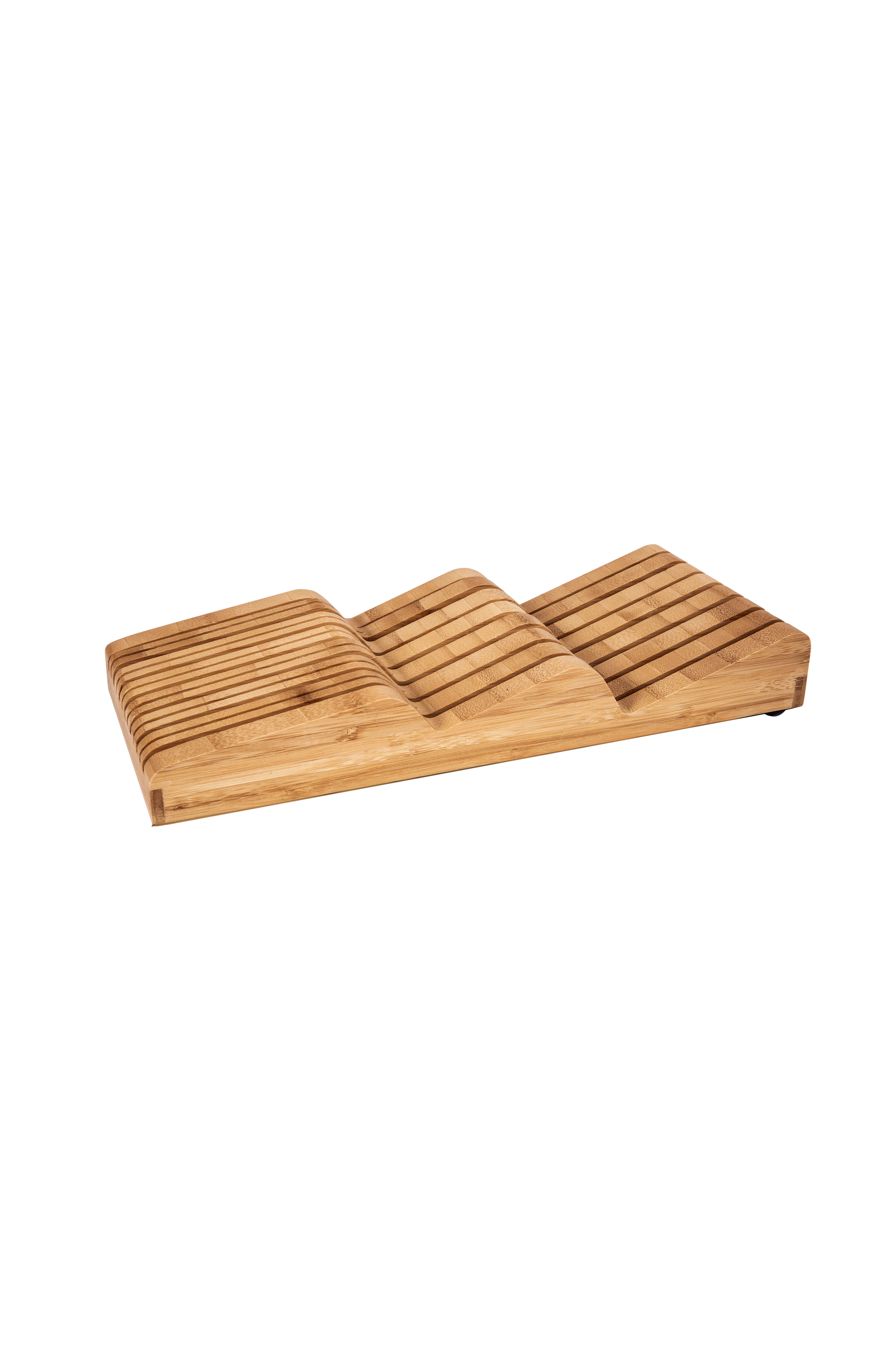 signature bambusta valmistettu veitsisäilytyslaatikkoon sijoitettava veitsisäilytysyksikkö on näppärä ratkaisu niille, jotka haluavat pitää työpöytänsä vapaana sotkusta. Aaltoileva säilytysyksikkö on ihanteellinen, jos haluat säilyttää keittiöveitset turvallisesti poissa näkyvistä tai lapsilukitussa laatikossa, kun olet lopettanut niiden käytön. signature veitsilaatikkoyksikkö sopii normaalikokoisiin keittiölaatikoihin, mutta matalammat laatikot eivät ehkä sulkeudu kokonaan, jos yrität säilyttää suurempia veitsiä.