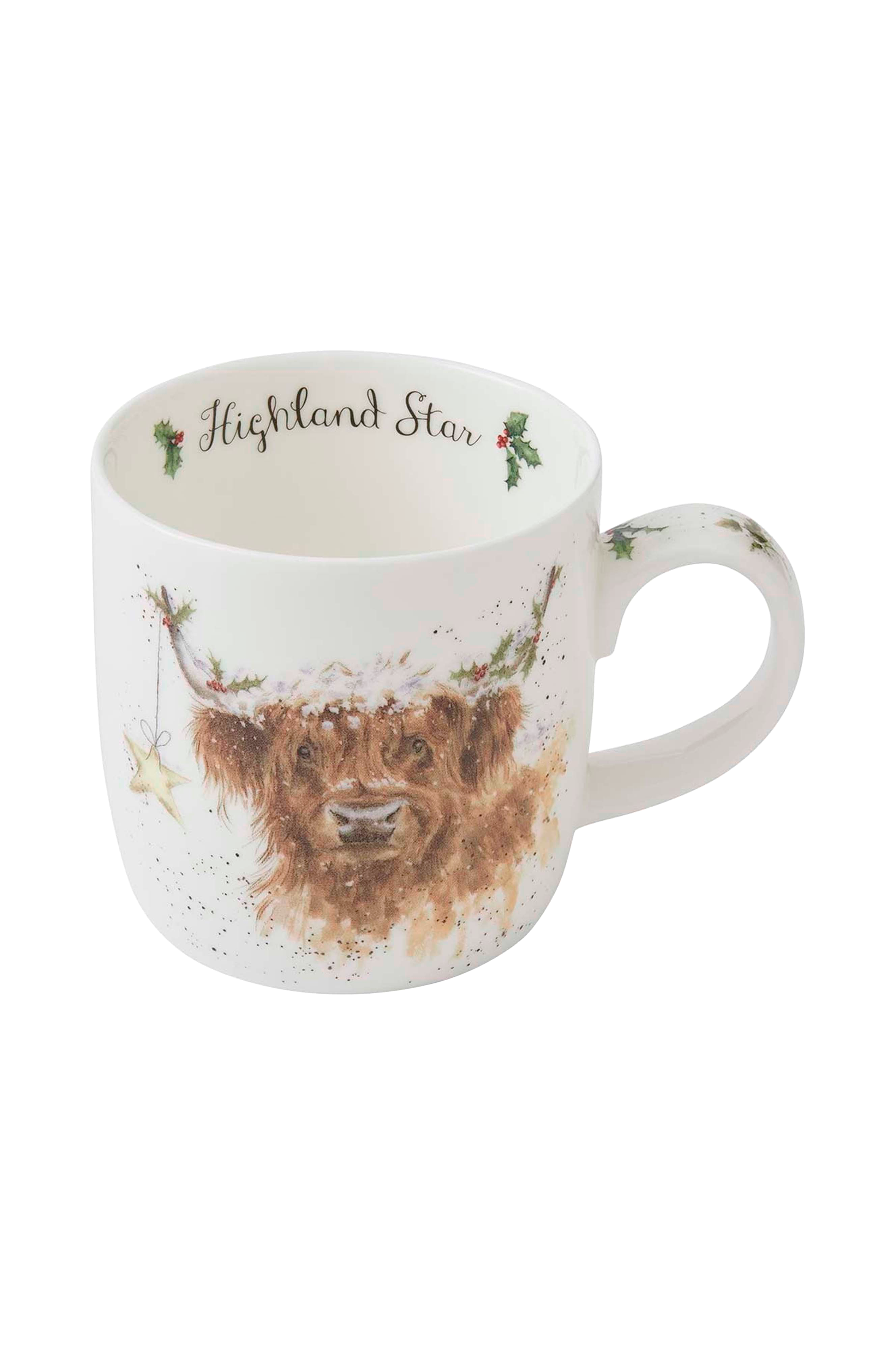 wrendale highland star -muki juhlii Skotlannin ylämaiden kauneutta juhlallisella vivahteella. Tämä hieno posliinimuki, jossa on viehättävä highland -lehmä tähtikruunulla koristeltuna, vangitsee Hannah Dalen tyypillisen taiteen lämmön ja mielikuvituksellisuuden. Ihanteellinen kodikkaisiin talvijuomiin ja huomaavaiseen lahjaksi.