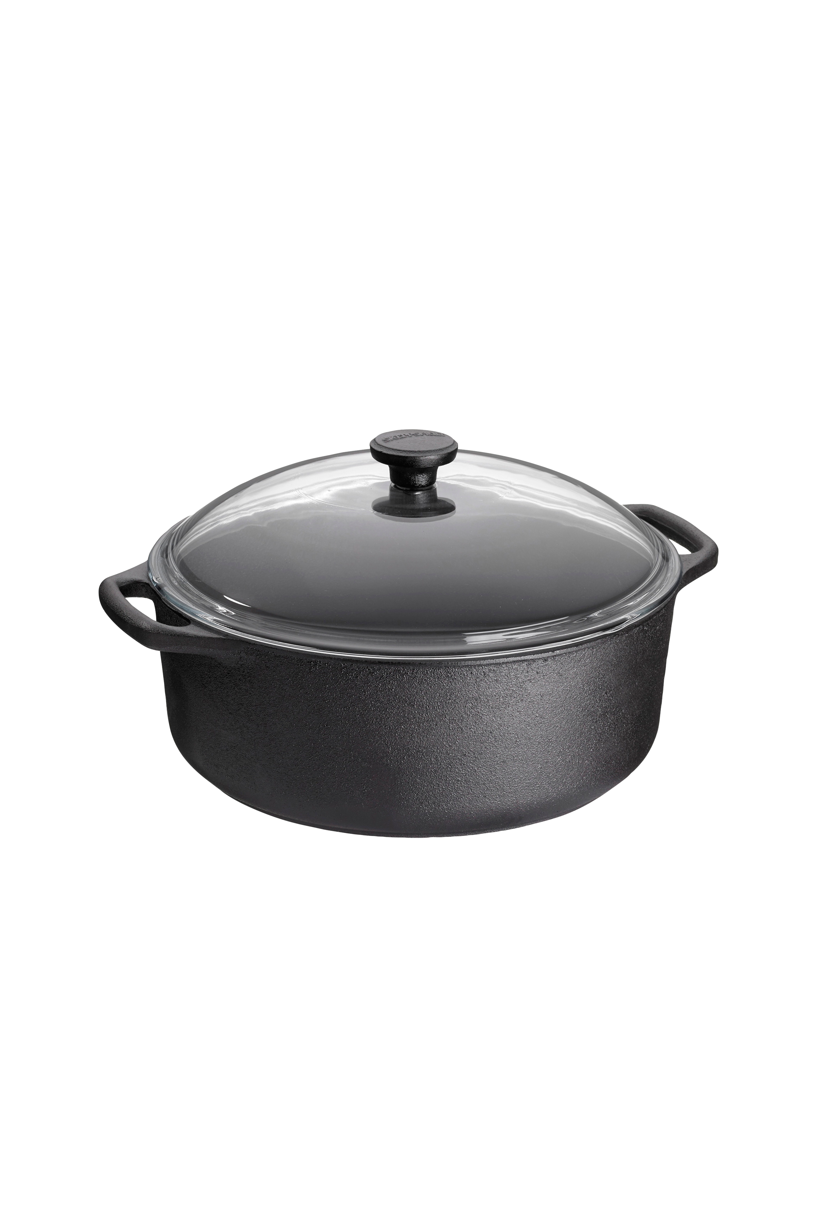 - Kansi lämmönkestävää lasia (200 °C), nuppi valurautaa.