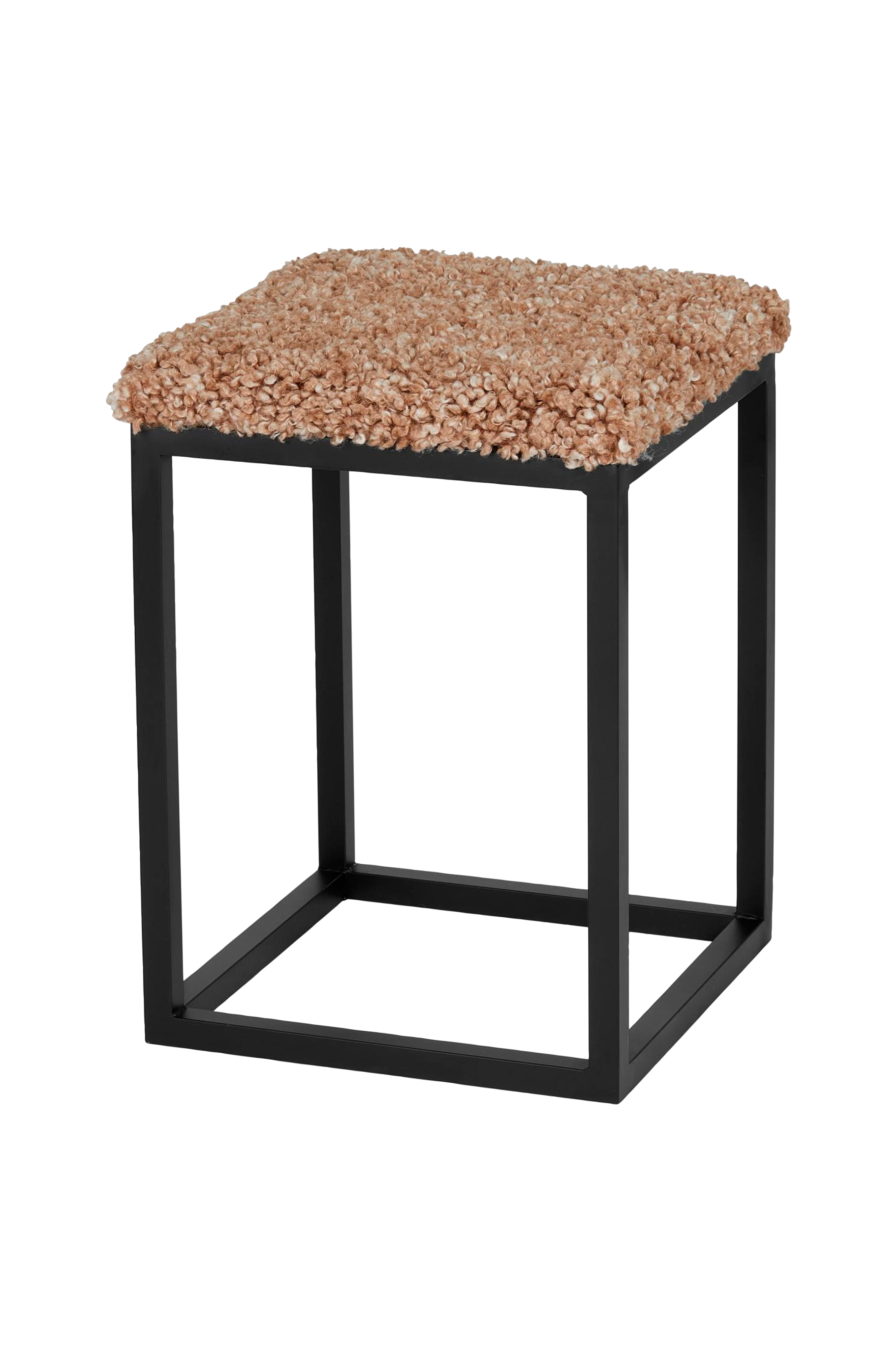 Jakkara, jossa klassinen skandinaavinen muotoilu. Pehmuste tyylikästä lampaankarvajäljitelmää ja jalusta terästä. Käytä penkkiä lisäistumapaikkana tai hienona sisustusyksityiskohtana.