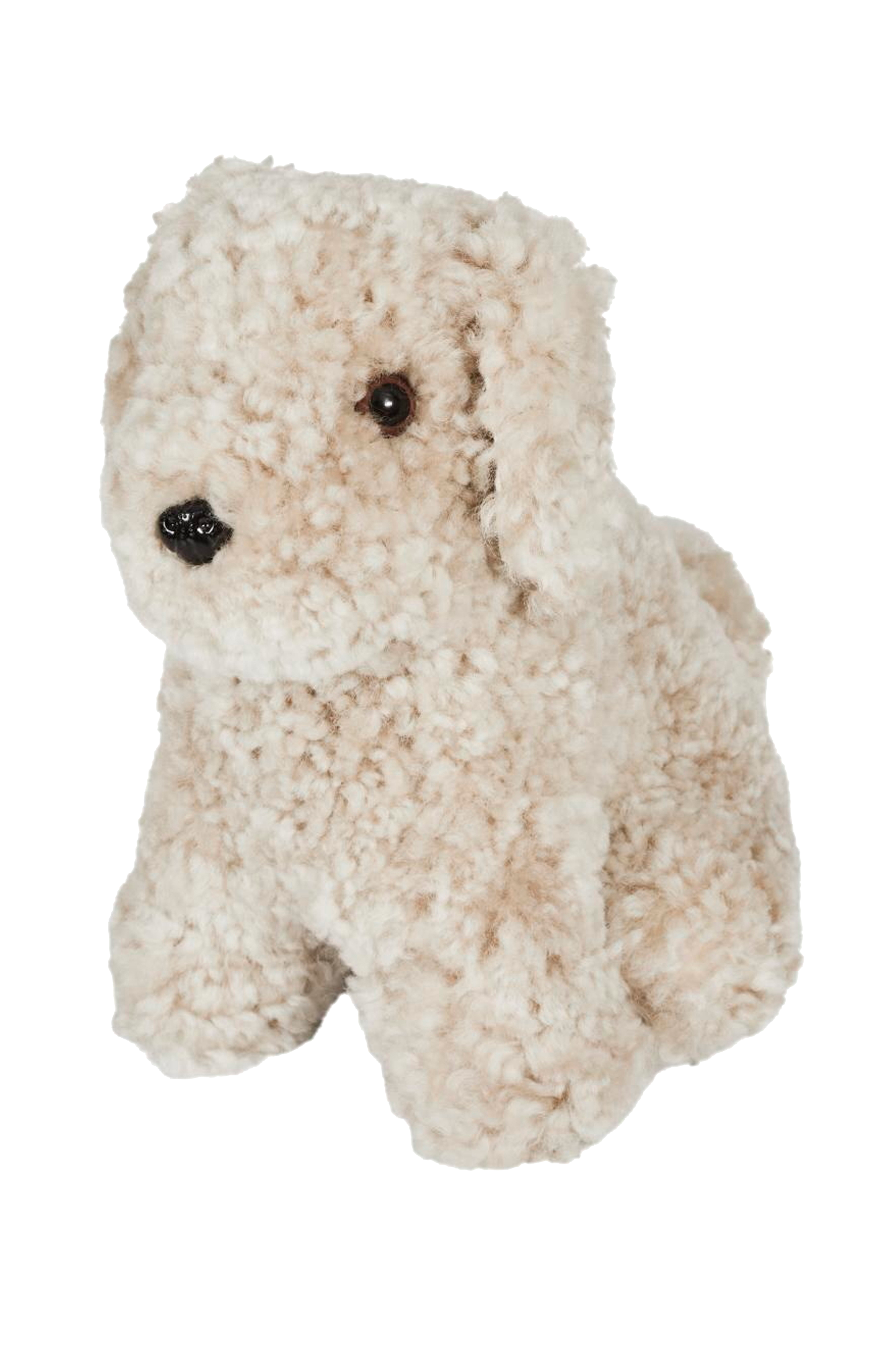 Suloinen koiranpentu. Minikokoinen pehmolelu leikattua, kiharaista australialaista lampaankarvaa. Lampaantaljoja ei ole kahta samanlaista. Lopputuotteen ulkonäkö voi vaihdella sekä sävyltään että struktuuriltaan.