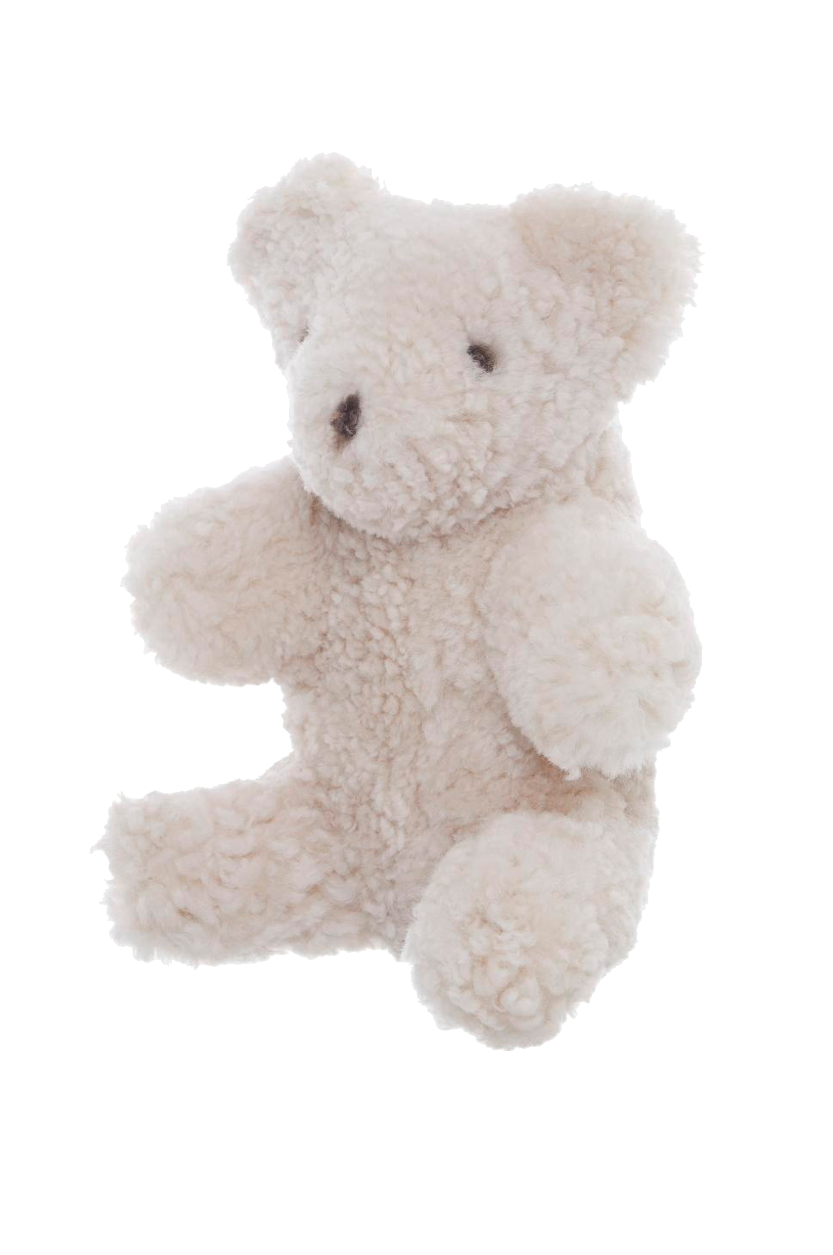 Suloisin tuotteemme. Nallekarhu luonnollisesta kiharasta, australialaisesta lampaannahasta. Kaksi lammasnahkaa ei ole koskaan samanlaisia. Tämä tarkoittaa, että valmis tuote voi vaihdella ulkonäöltään, väriltään ja rakenteeltaan. Materiaali: lampaannahka ja polyesteri.