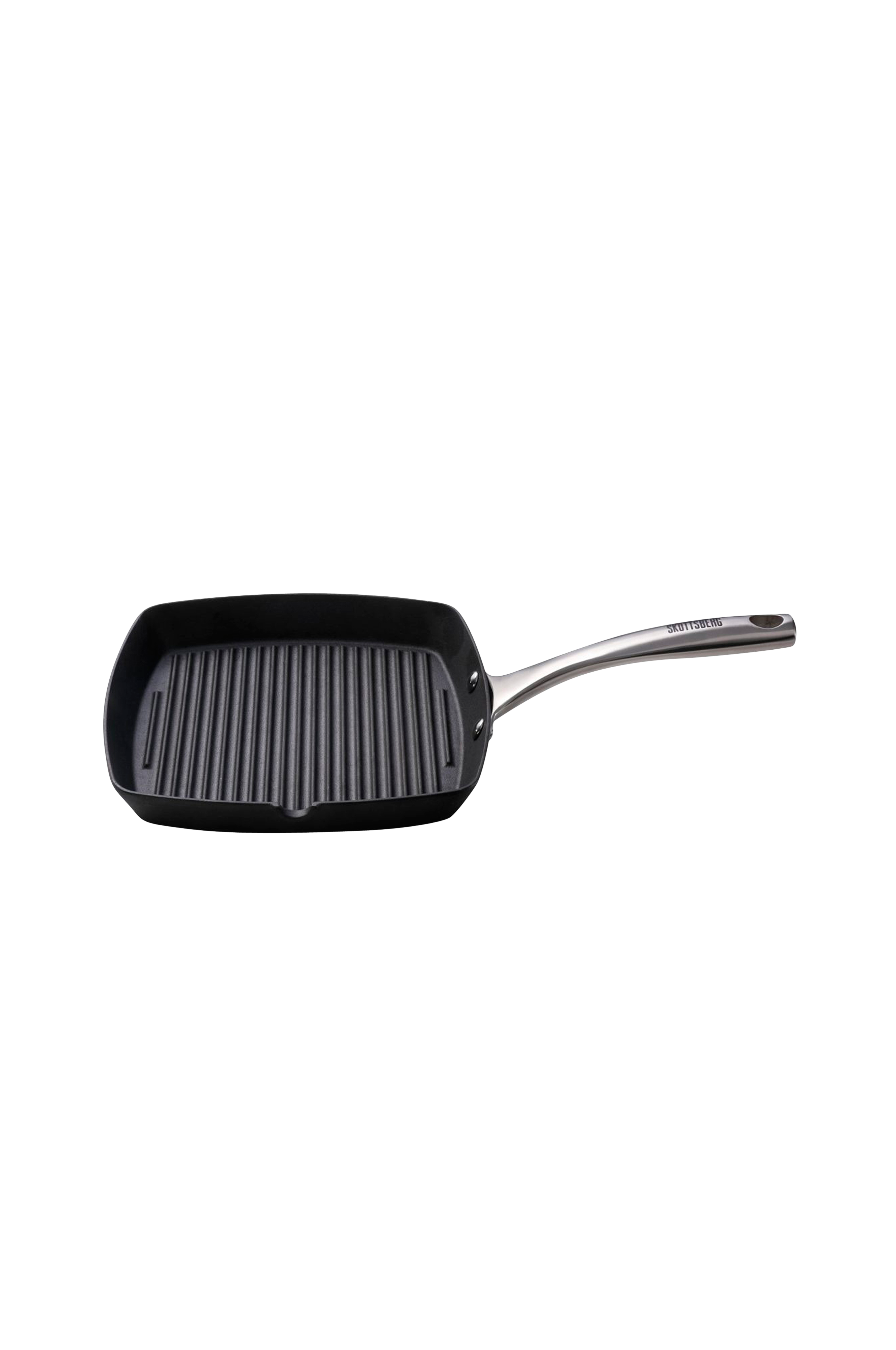 Skottsbergin valurautainen grillipannu. Pannu on esipaistettu, eli se on käsitelty kuumentamalla siinä kasviöljyä, jotta saat pannun käyttöön heti ostamisen jälkeen. Tämä grillipannu on valmistettu perinteisesti yhdellä valulla sulatetusta rautamalmista. Grillipannu lämpenee hitaasti, mutta säilyttää lämmön pitkään. Grillipannun kahva on ontto, joten se ei kuumene ja siitä saa hyvän otteen. Pannu on lämpökäsitelty ruostumisen ja naarmuuntumisen ehkäisemiseksi. Siksi tämä pannu kestää korkeita lämpötiloja ja soveltuu erityisen hyvin kalan ja lihan paistamiseen, kasvisten grillaamiseen tai herkullisten voileipien valmistamiseen.
