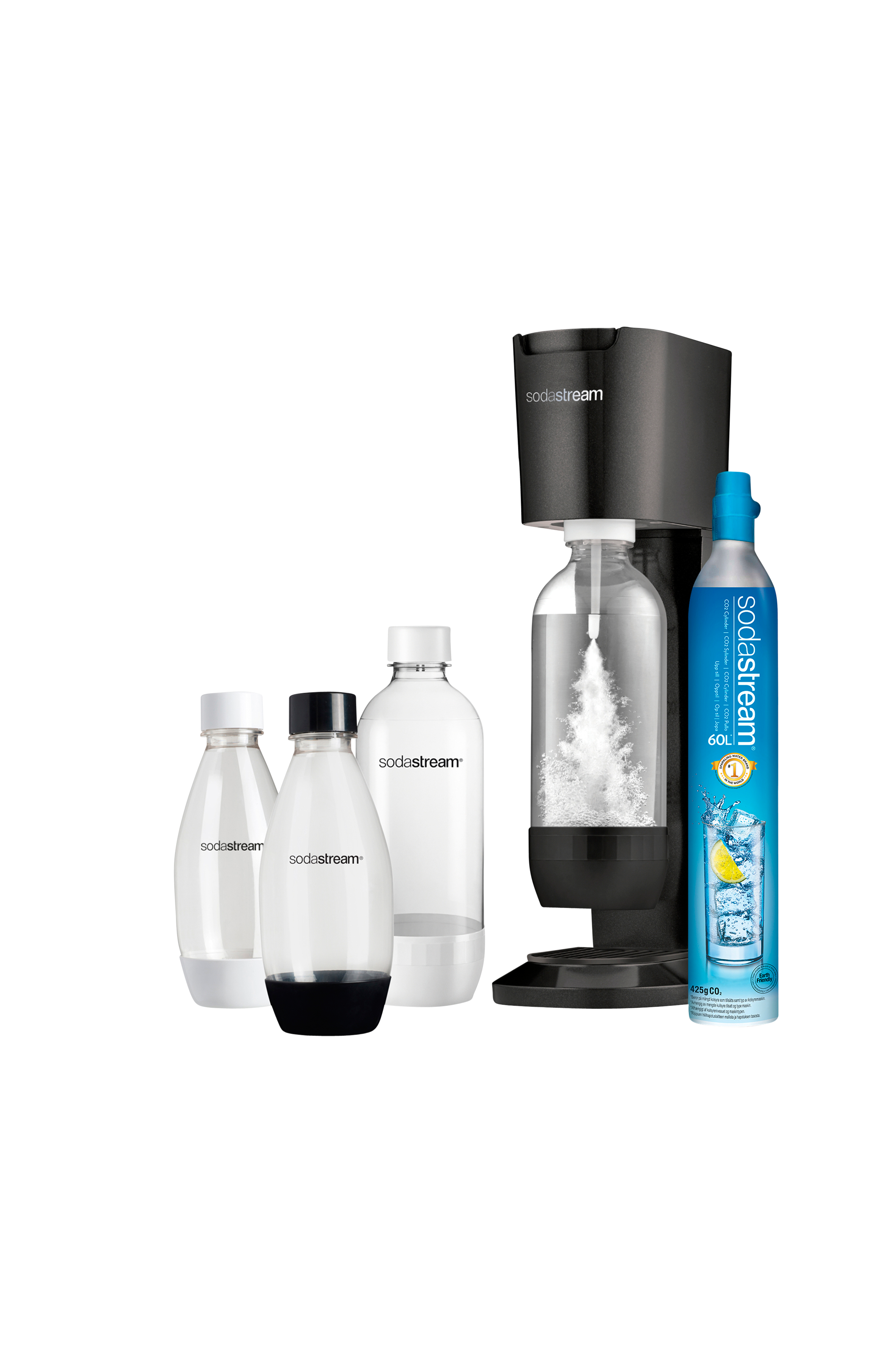 2 x 1 litran hiilihappopullo, 2 x 0,5 litran hiilihappopullo + Käyttöohje