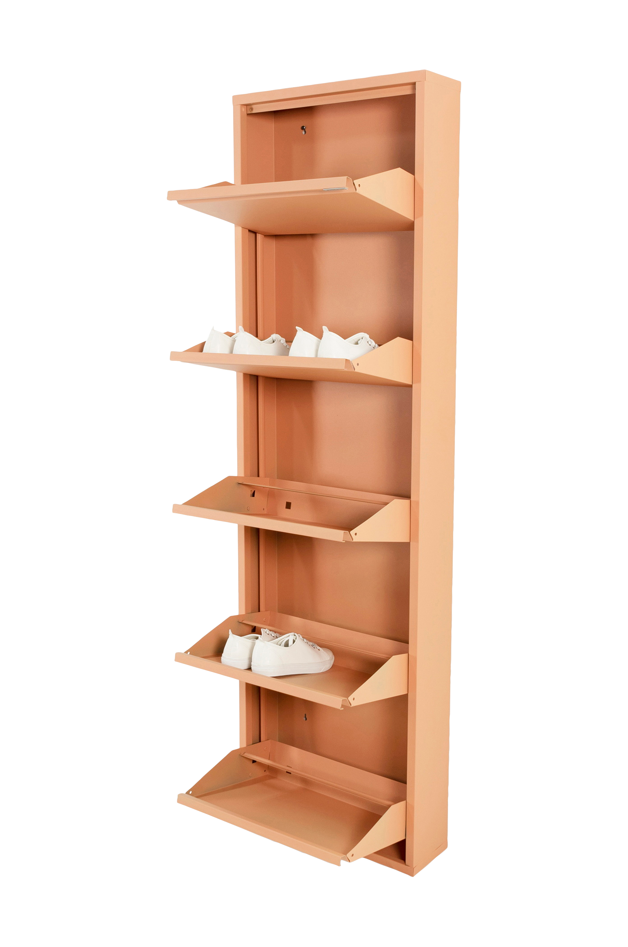 Jauhemaalatusta teräksestä valmistettu tyylikäs ja matala Billy 5 -kenkäkaappi on tyylikäs ratkaisu yleiseen ongelmaan: ympäriinsä lojuviin kenkiin. Monikäyttöinen kenkäkaappi, jota on saatavana useassa eri koossa ja joka on käytännöllinen katseenvangitsija sekä lattialla että seinällä. Billy 5:ssä on tilaa noin 10 kenkäparille, ja sitä on saatavana useissa eri väreissä.