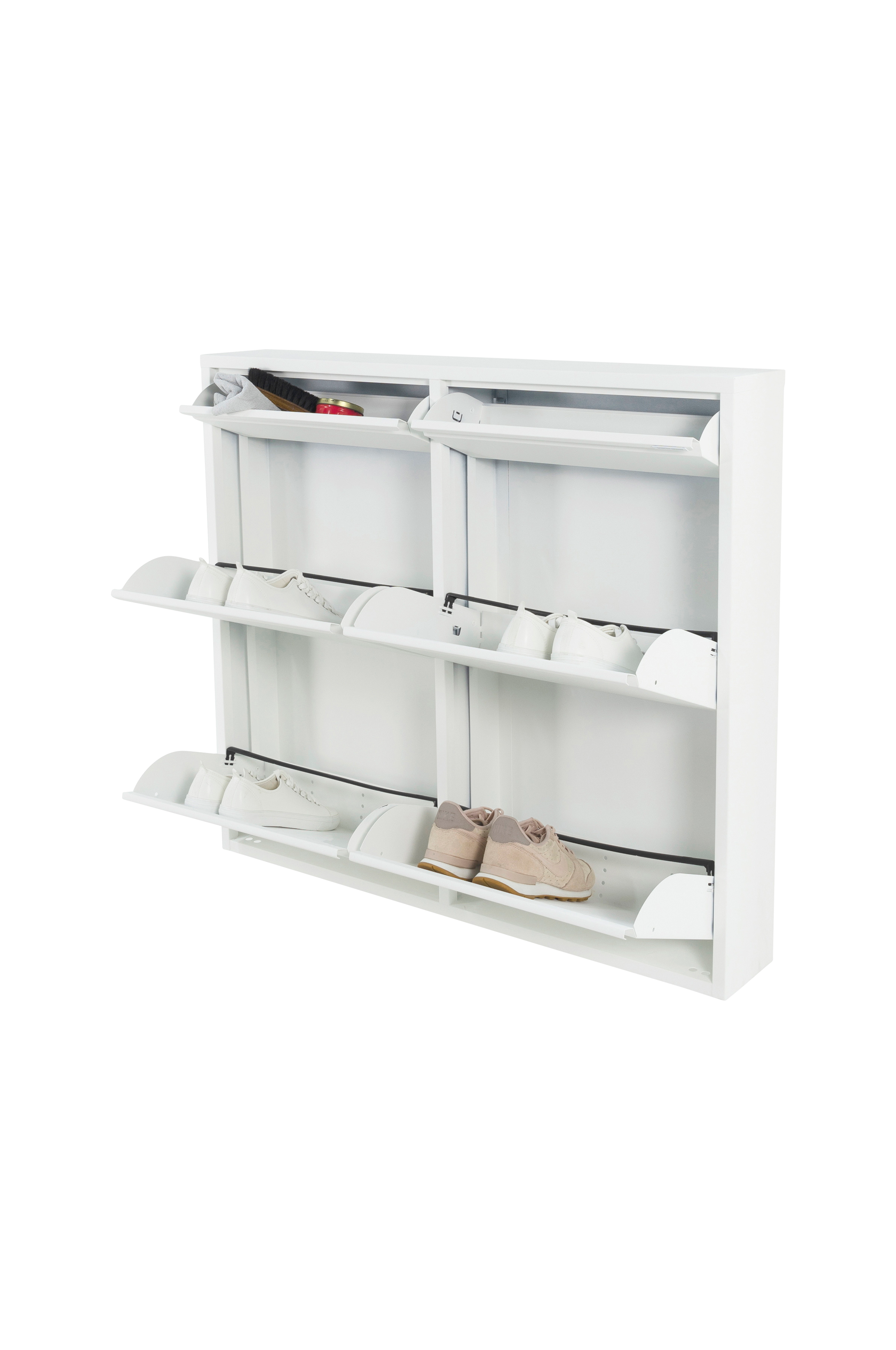Jauhemaalatusta teräksestä valmistettu tyylikäs ja matala Billy 6 -kenkäkaappi on tyylikäs ratkaisu yleiseen ongelmaan: ympäriinsä lojuviin kenkiin. Monikäyttöinen kenkäkaappi, jota on saatavana useassa eri koossa ja joka on käytännöllinen katseenvangitsija sekä lattialla että seinällä. Billy 6 tarjoaa tilaa noin 12 kenkäparille. Ylimmät lokerot voidaan täyttää käsineillä tai muilla tarvikkeilla, ihanteellista! Vinkkimme: ripusta useita Billyjä vierekkäin tai päällekkäin leikkisän vaikutelman aikaansaamiseksi.