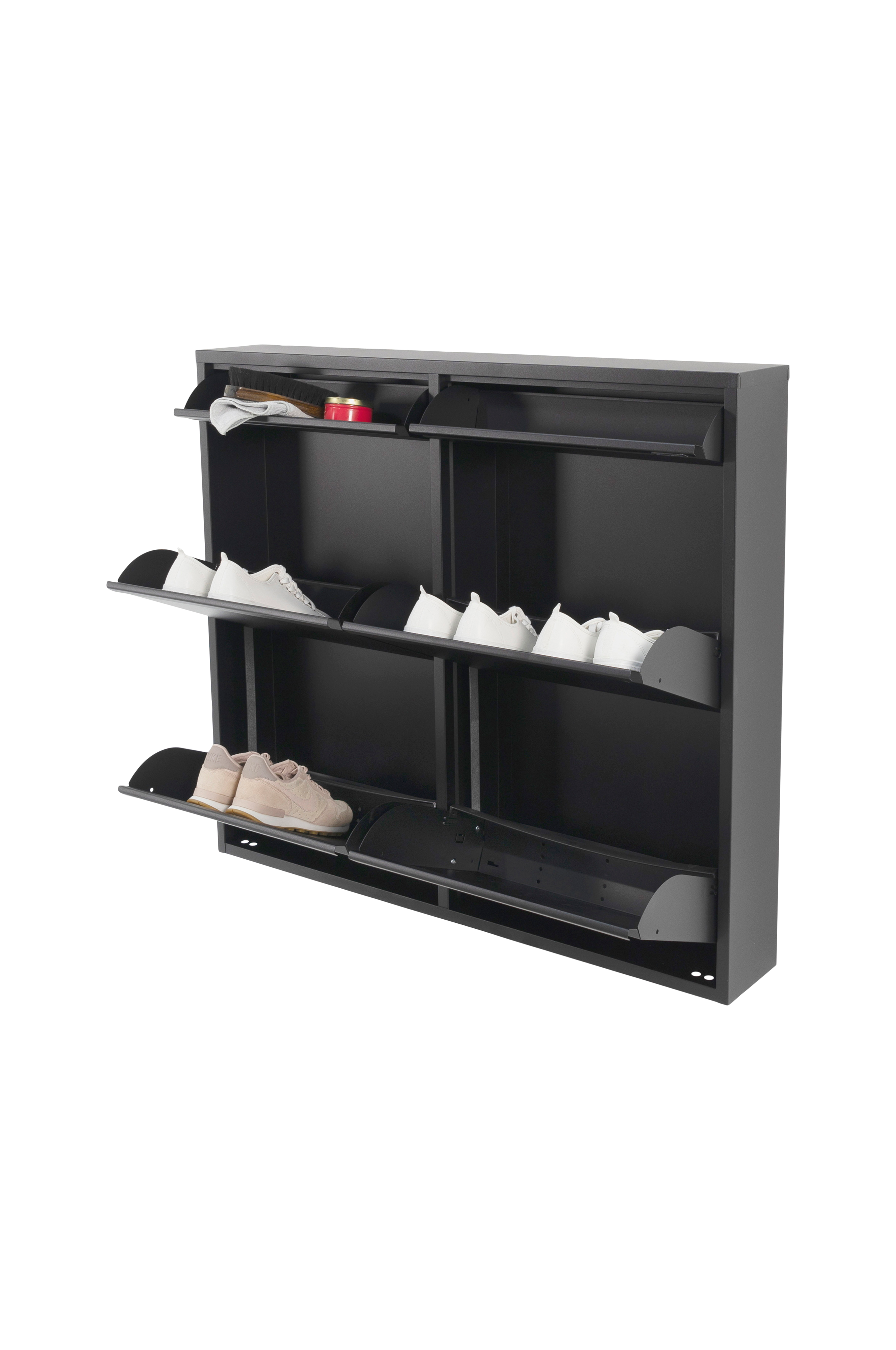 Jauhemaalatusta teräksestä valmistettu tyylikäs ja matala Billy 6 -kenkäkaappi on tyylikäs ratkaisu yleiseen ongelmaan: ympäriinsä lojuviin kenkiin. Monikäyttöinen kenkäkaappi, jota on saatavana useassa eri koossa ja joka on käytännöllinen katseenvangitsija sekä lattialla että seinällä. Billy 6 tarjoaa tilaa noin 12 kenkäparille. Ylimmät lokerot voidaan täyttää käsineillä tai muilla tarvikkeilla, ihanteellista! Vinkkimme: ripusta useita Billyjä vierekkäin tai päällekkäin leikkisän vaikutelman aikaansaamiseksi.