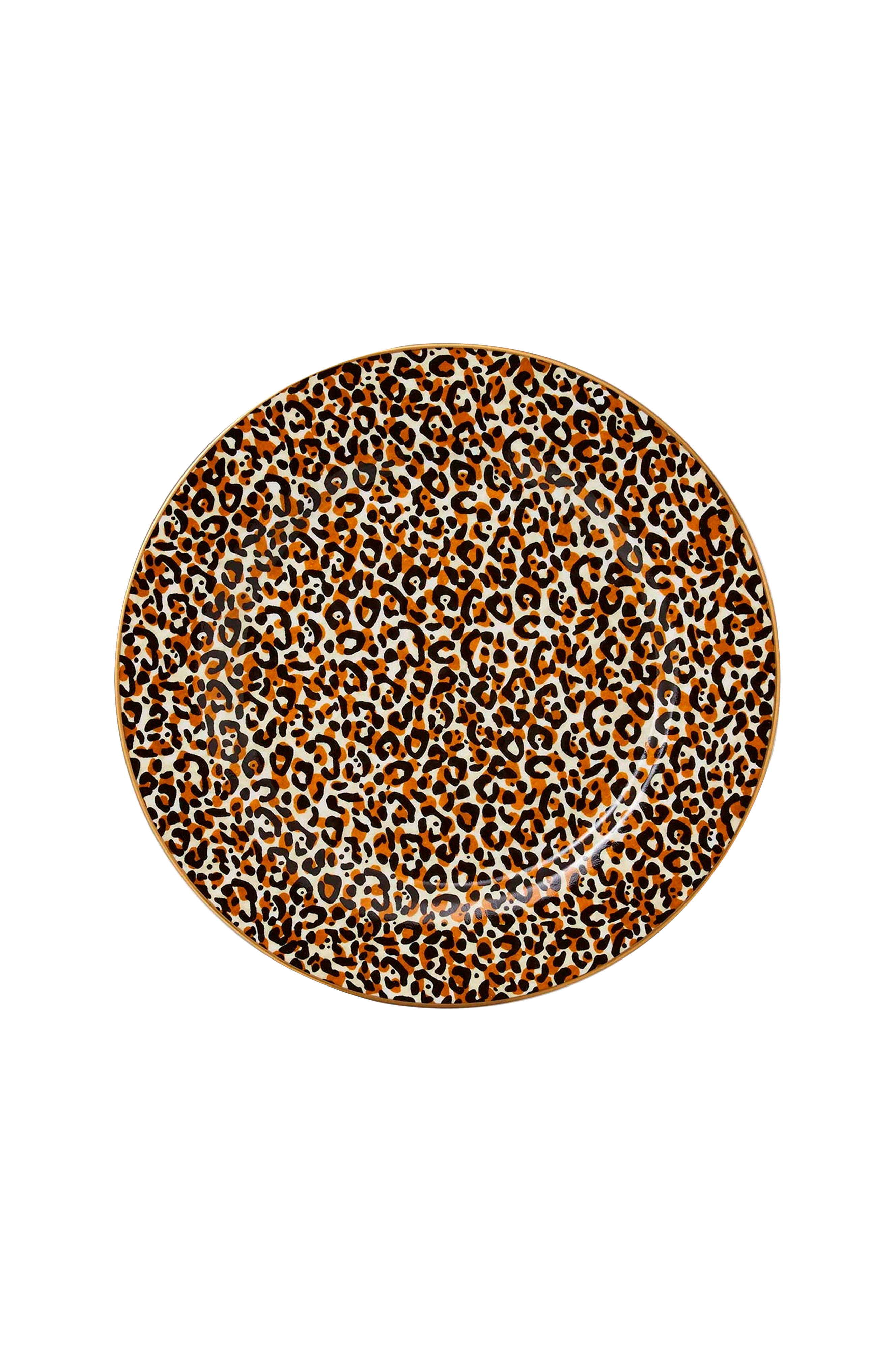 Spode-tuotemerkin leopardikuvioinen leipälautanen. 22 karaatin kultareunus tuo eläimelliseen kuvioon hienostuneen säväyksen.