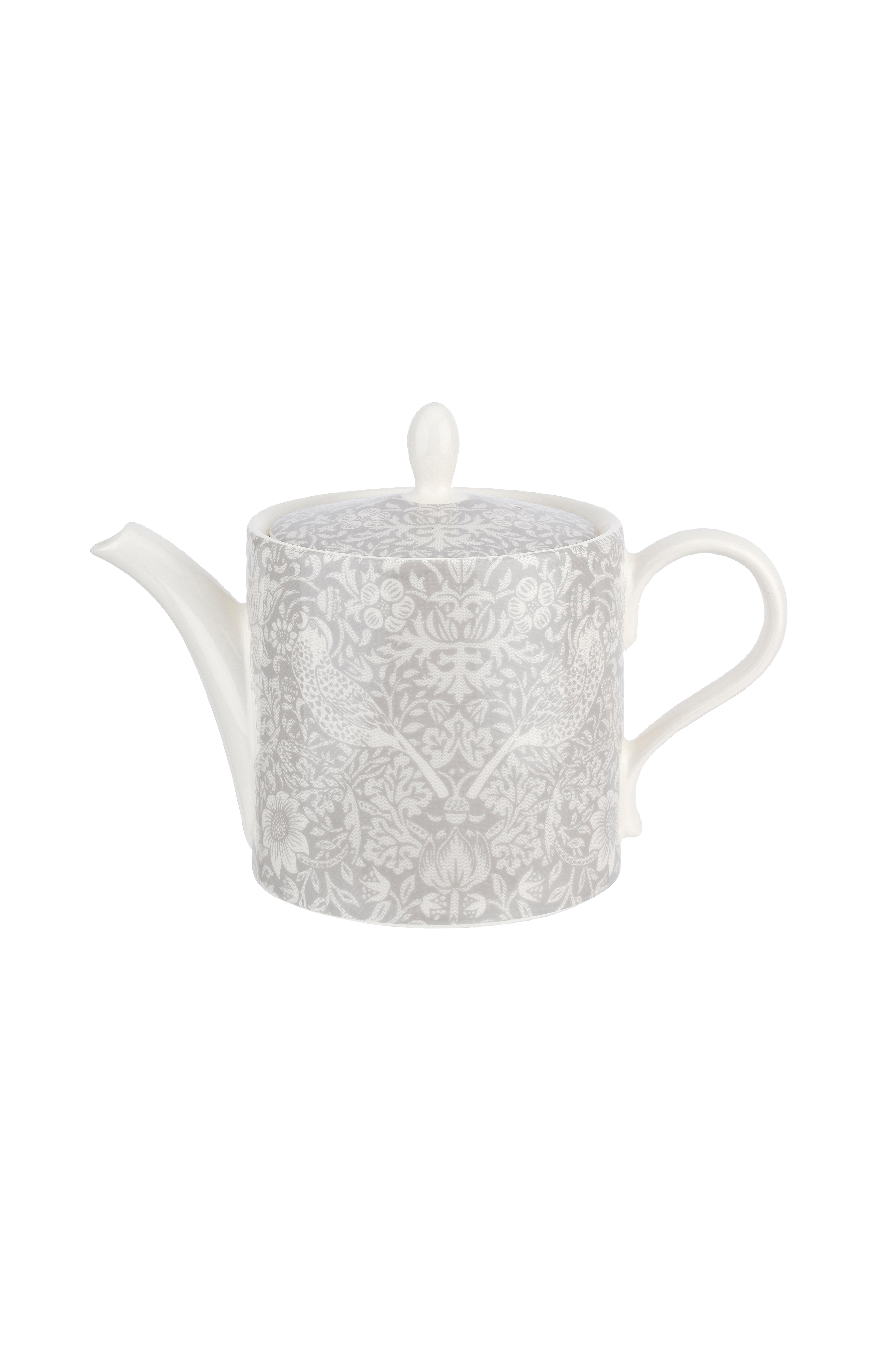 Tässä Pure Morris teekannussa Spode on rakastettu Strawberry Thief muotoilu pehmeän harmaalla sävyllä. Tämä Englannissa valmistettu kaunis teekannu tuo iltapäiväteeseesi ripauksen modernia perinnettä.