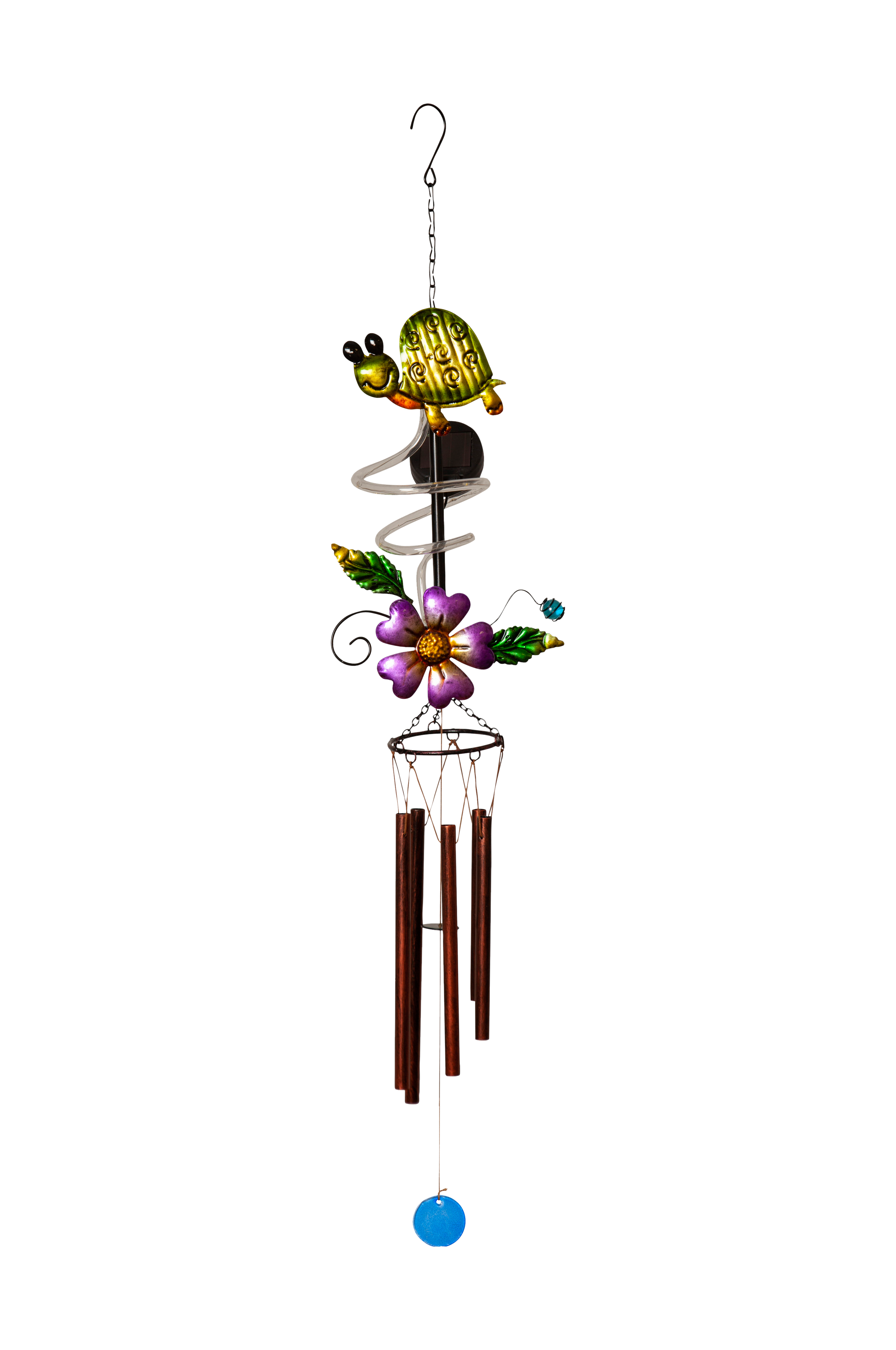 Turtle-aurinkokennokoriste on tuulessa kevyesti soiva tuulikello. Monivärisessä koristeessa on sievä kilpikonna, kukka ja lehtiä. Kaunis koriste on helppo ripustaa mukana toimitettavan koukun avulla puutarhaan, parvekkeelle tai terassille. Se loistaa yöllä lämpimän valkoista valoa. Sijoita aurinkokennovalosarja paikkaan, missä aurinko paistaa suoraan paneeliin saadaksesi parhaan mahdollisen latauksen mukana tulevalle akulle.