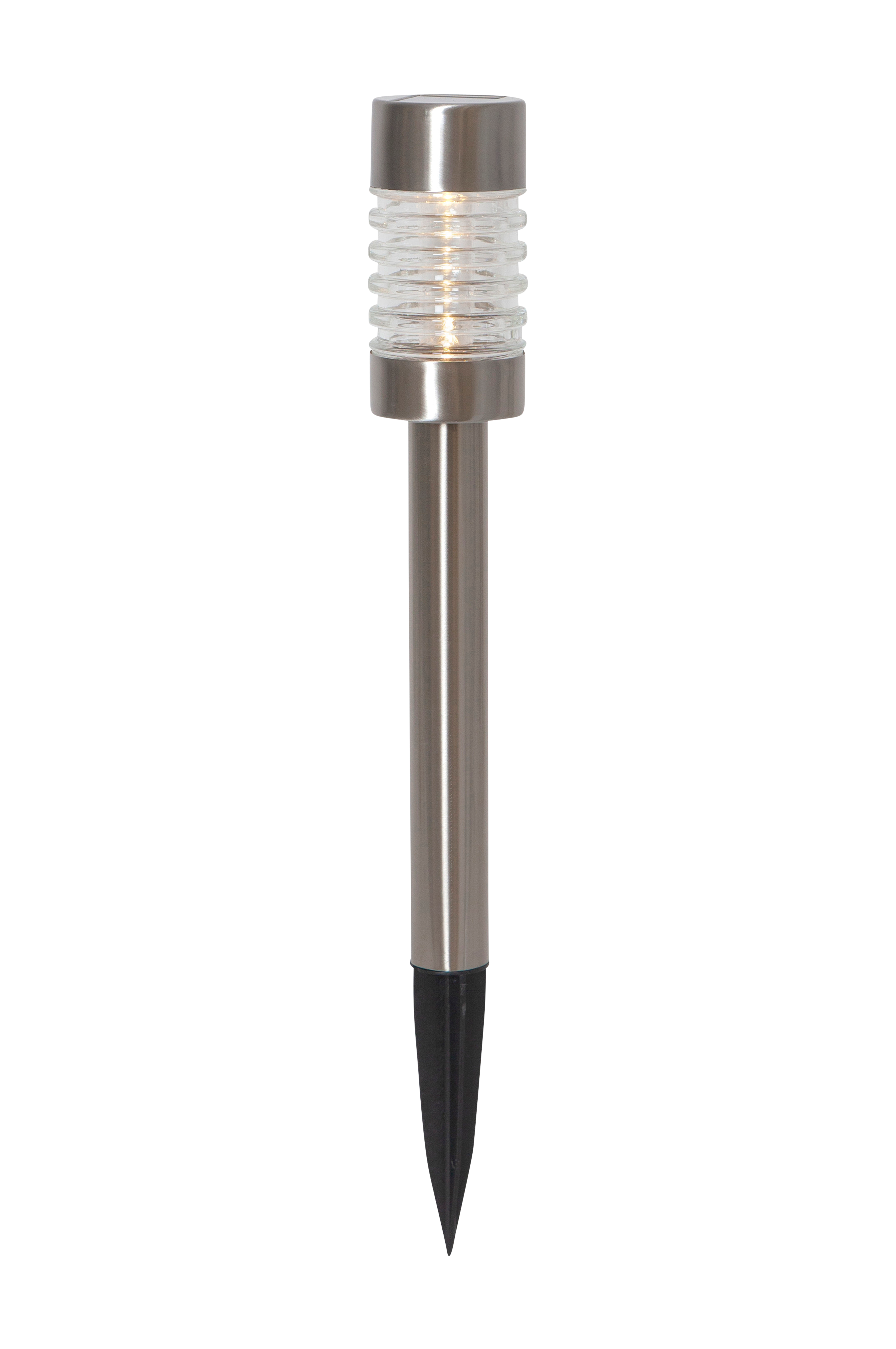 Aurinkokennolla toimiva kulkuväylävalaisin terästä. Loistaa yöllä lämpimän valkoista valoa. Mukana valorele ja paristo. Korkeus 42 cm ja halkaisija 7,5 cm.