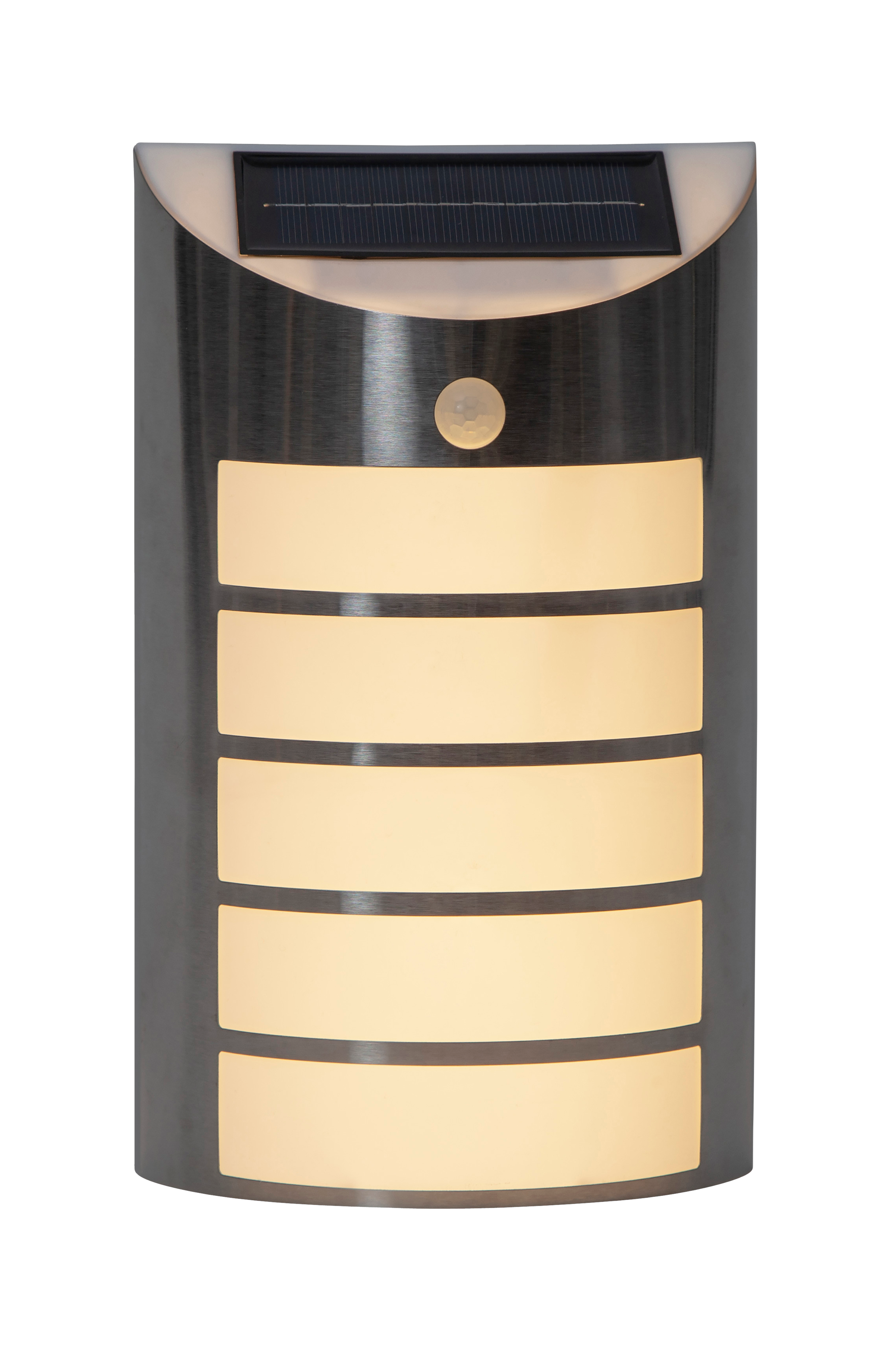 Aurinkokennokäyttöinen seinävalaisin liiketunnistimella, joka liikettä havaittuaan nostaa valotehon 50 luumeniin 30 sekunniksi, ja laskee 8 luumenin tasaiseen valoon yön ajaksi. Mukana LED-valonlähde sekä 1 paristo valoreleeseen. Upea valaisin julkisivuun tai sisäänkäyntiin. Lämpimän valkoinen valo. Korkeus 26,5 cm, leveys 16 cm ja syvyys 7 cm.