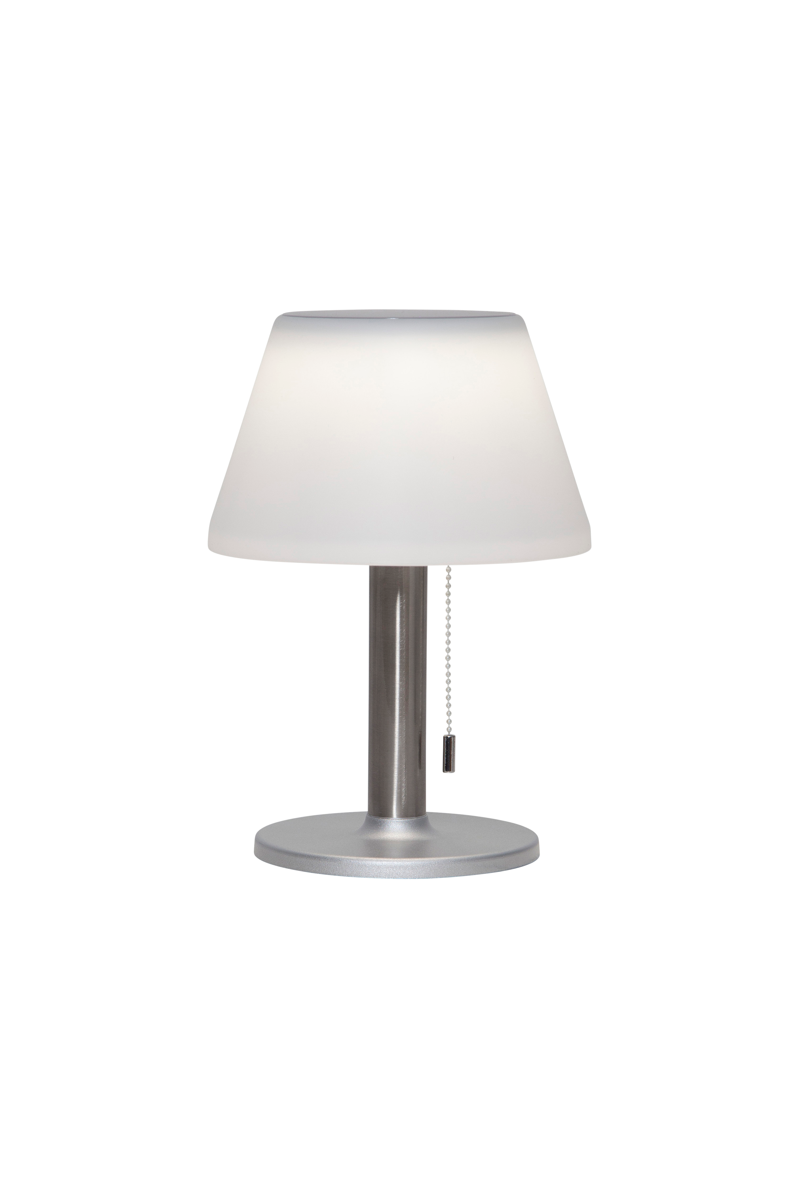 Auringonvalosta latautuva pöytävalaisin sopii hyvin sekä sisälle että ulos. Valaisimessa on kolme lumen-arvoa, 10/50/200 lm, ja se antaa lämpimän valkoisen valon. Sytytä valaisin lampunvarjostimen alla sijaitsevasta katkaisijasta ja valitse sen jälkeen valonmäärä riippukatkaisimen avulla. Toimii yhdellä ladattavalla Li-Ion-paristolla. Paristo mukana.