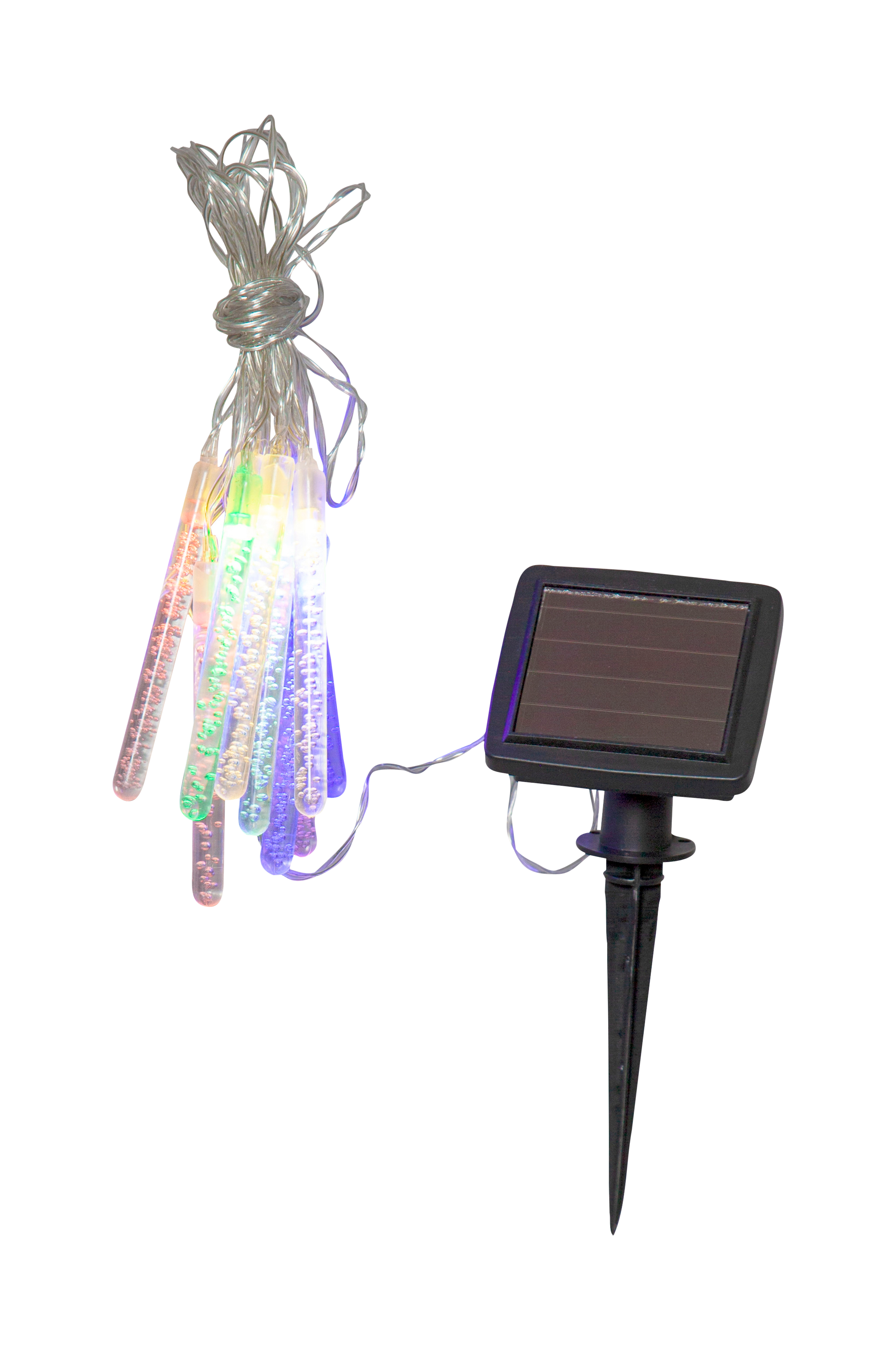 Kaunis aurinkokennolla toimiva Bubbly-valosarja. Kuplia sisältävät 10 akryylipuikkoa antavat lämpimän valkoista valoa pimeyteen. Aurinkokennovalosarjan valopisteiden väli on 20 cm, ja valosarjan pituus 180 cm. Paneeliosan ja viimeisen akryylipinnan välissä on 2 metrin johto. Johdon pituus helpottaa paneelin sijoittamista suoraan auringonpaisteeseen, mikä on välttämätöntä mukana tulevan akun lataamiseksi.