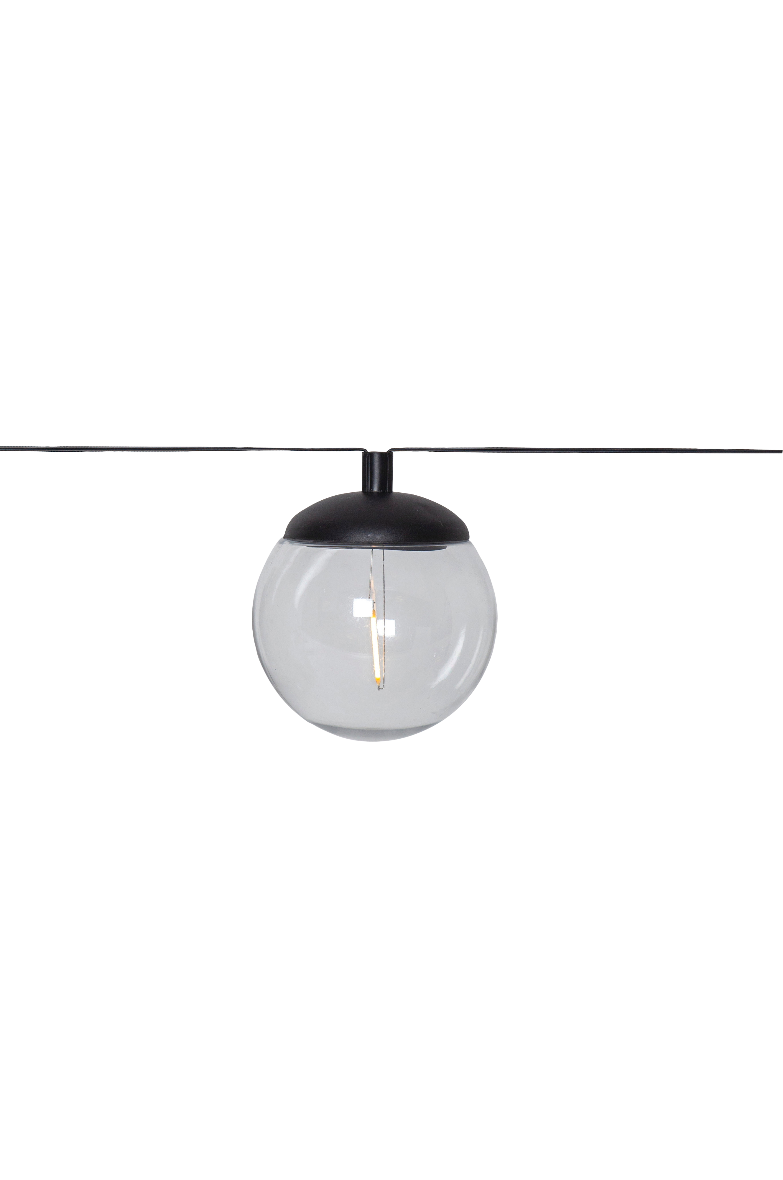 Globe-aurinkokennovalosarjassa on kahdeksan palloa, jotka on valmistettu läpikuultavasta PS-muovista. Pallojen välissä on 30 cm:n johto. LED-filamenttilamppu loistaa lämpimän valkoista valoa pimeyteen. Aurinkokennovalaisin sopii erinomaisesti koristeeksi puutarhaan, parvekkeelle tai terassille. Paneeliosan ja viimeisen pallon välissä on 170 cm:n johto. Johdon pituus helpottaa paneelin sijoittamista suoraan auringonvaloon, mikä on välttämätöntä mukana tulevan akun lataamiseksi. Sijoita aurinkokennovalosarja paikkaan, jossa aurinko paistaa paneeliin päivän aikana saadaksesi parhaan mahdollisen latauksen mukana tulevalle akulle.