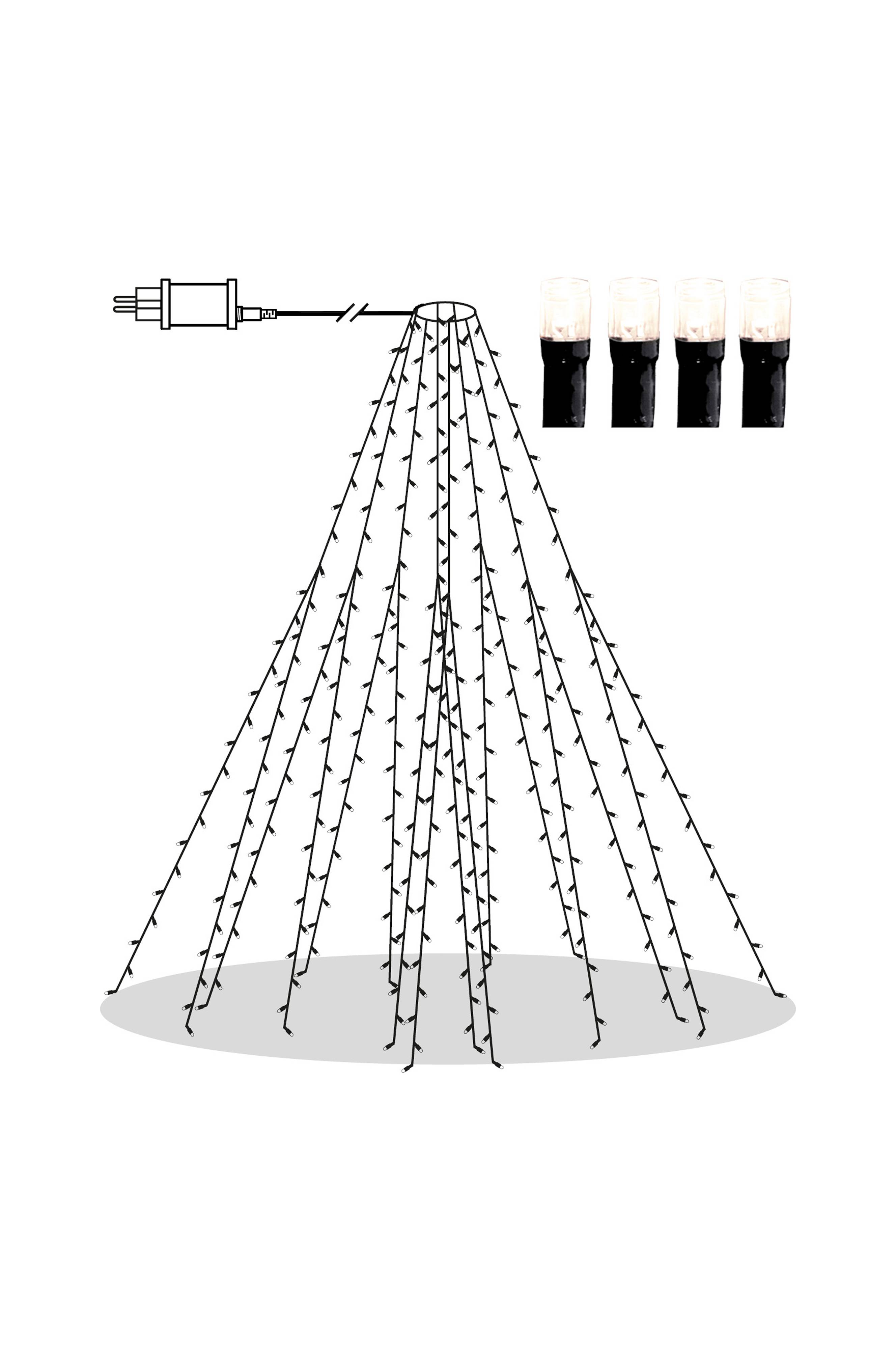 Joulukuusen valosarja, jossa 360 LED-lamppua. Lampuissa on kaunis, sävyltään kylmähkö valo. Valosarjan korkeus on noin kaksi metriä, ja kahdeksan haaran ansiosta valonlähteet jakautuvat tasaisesti. Täydellinen valosarja sisä- tai ulkojoulukuuseen.