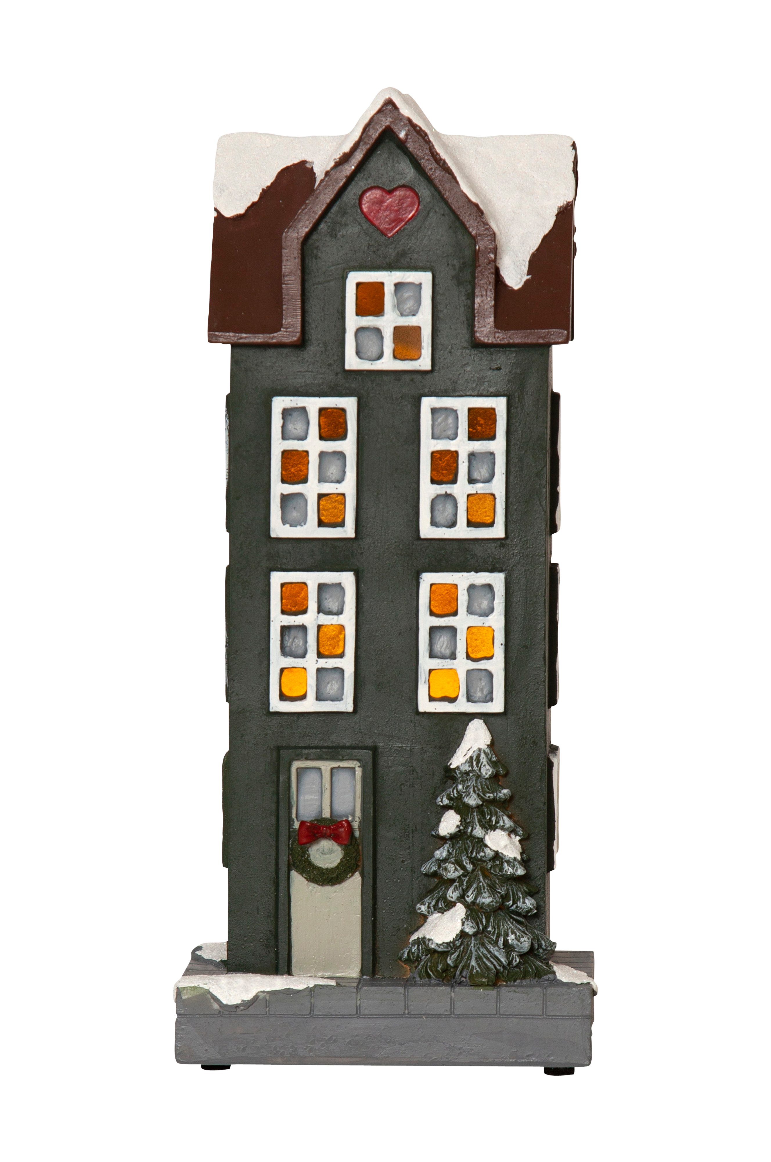 Kaunis talo, jonka ikkunoissa on valoa. Toimii 2xaa paristoilla (ei sisälly) ja niissä on ajastintoiminto. Koristele hyllylläsi tai aseta talo sivupöydälle. Sopii täydellisesti koko pimeään vuodenaikaan ja siitä tulee tunnelmallinen koriste adventtiin ja jouluun.