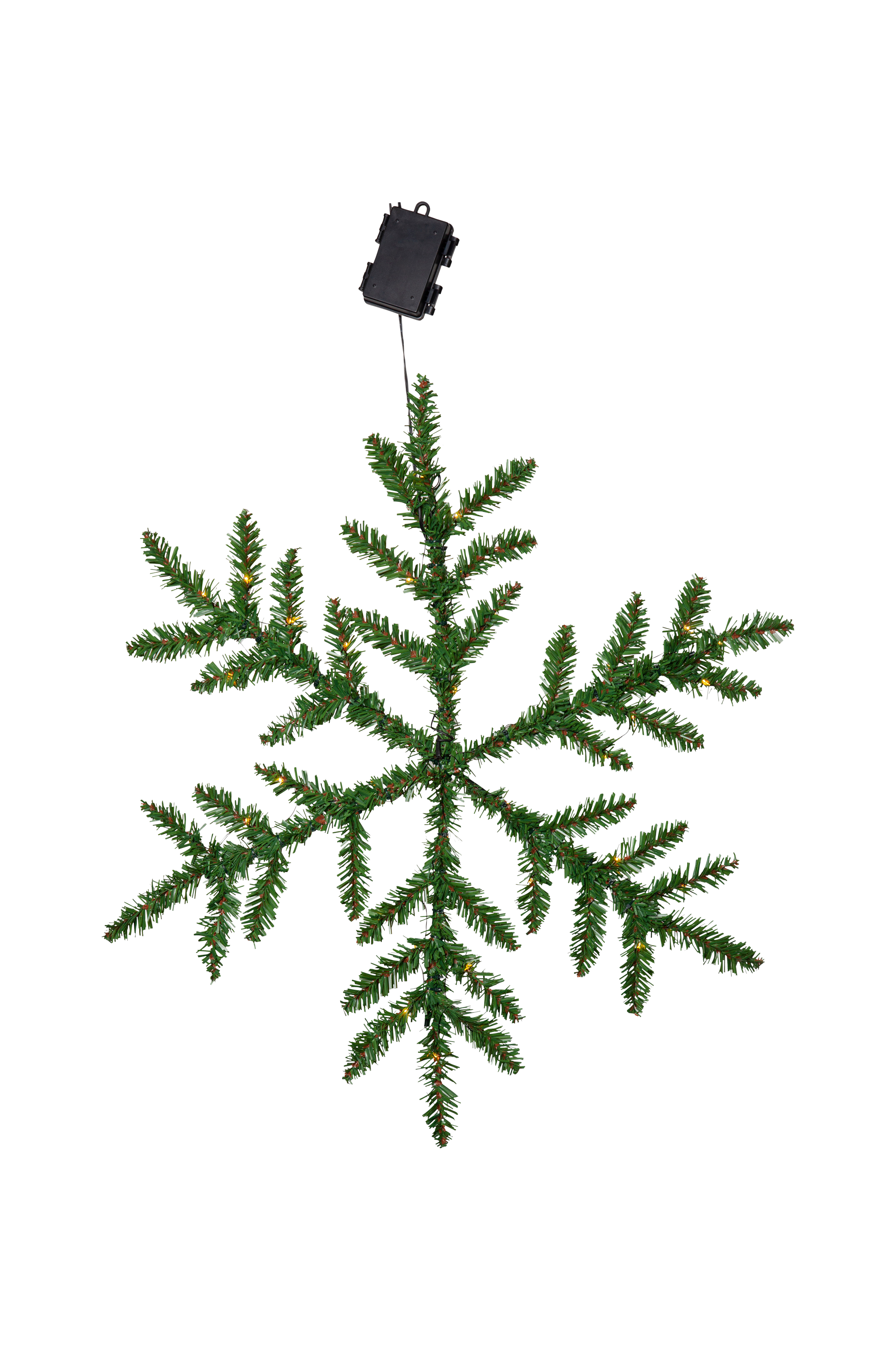 Snowflake on kaunis koriste ulko-ovessa tai ikkunassa sisällä. Rohs- ja REACH-hyväksytystä PVC:stä valmistetut neulaset on asetettu metallirunkoon. Pienet lämpimän valkoiset valopisteet valaisevat kauniisti hämärässä. Sopii sisä- ja ulkokäyttöön. Toimii kolmella AA-paristolla. Siinä on ajastintoiminto ja kun kytkin on ajastintilassa, loistaa Snowflake-koriste noin 25 päivää. Paristot eivät sisälly toimitukseen.