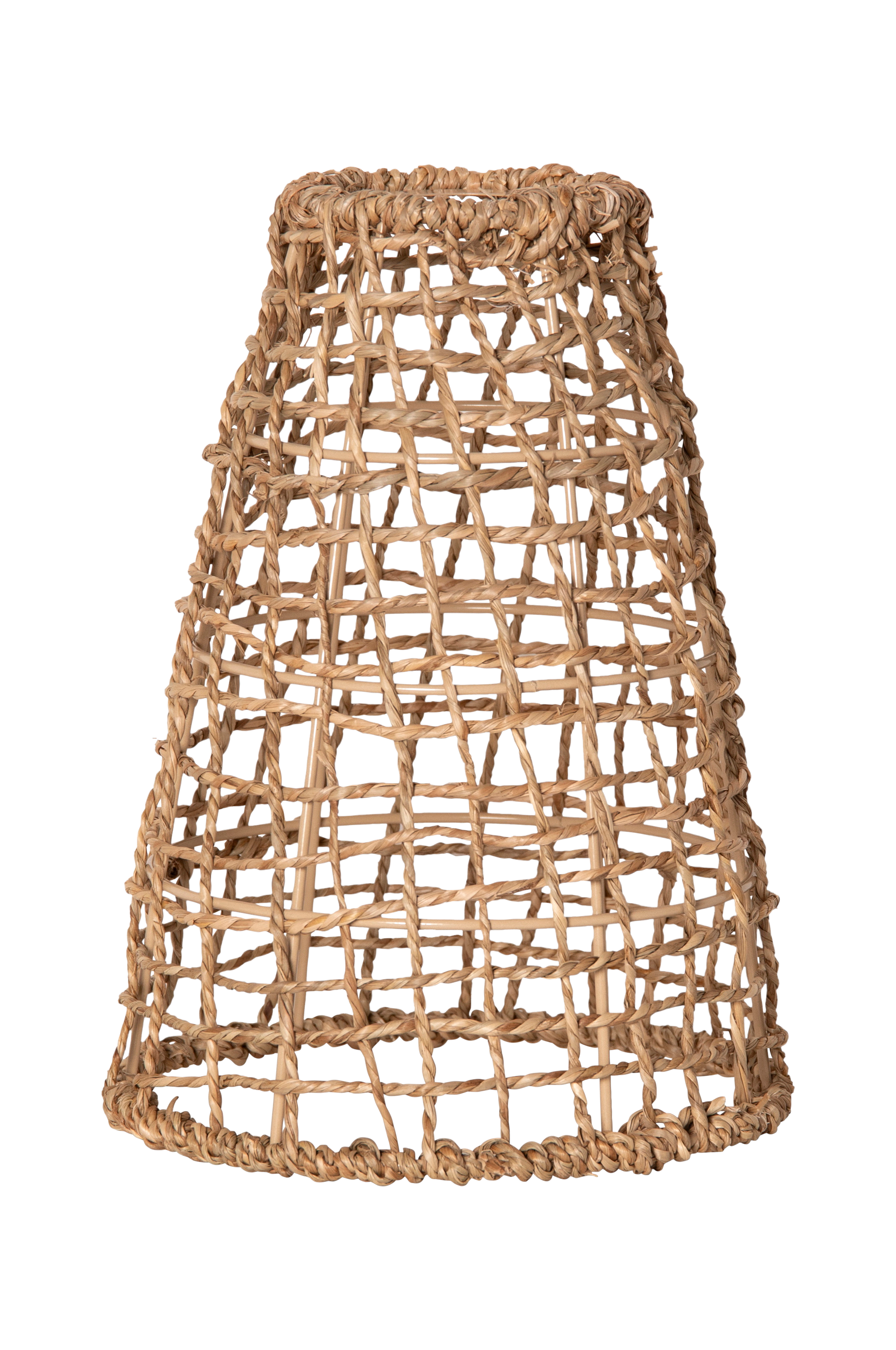 Punottu lampunvarjostin kuivattua meriruohoa, koko 17x23cm. Lampunvarjostin on käsin punottu, mikä antaa jokaiselle tuotteelle ainutlaatuisen ulkonäön. Pidike on tehty sopimaan e27-johtosarjaan. Sekoita ja sovita ulkokäyttöön tarkoitettujen johtosarjojen ja lamppujen kanssa.