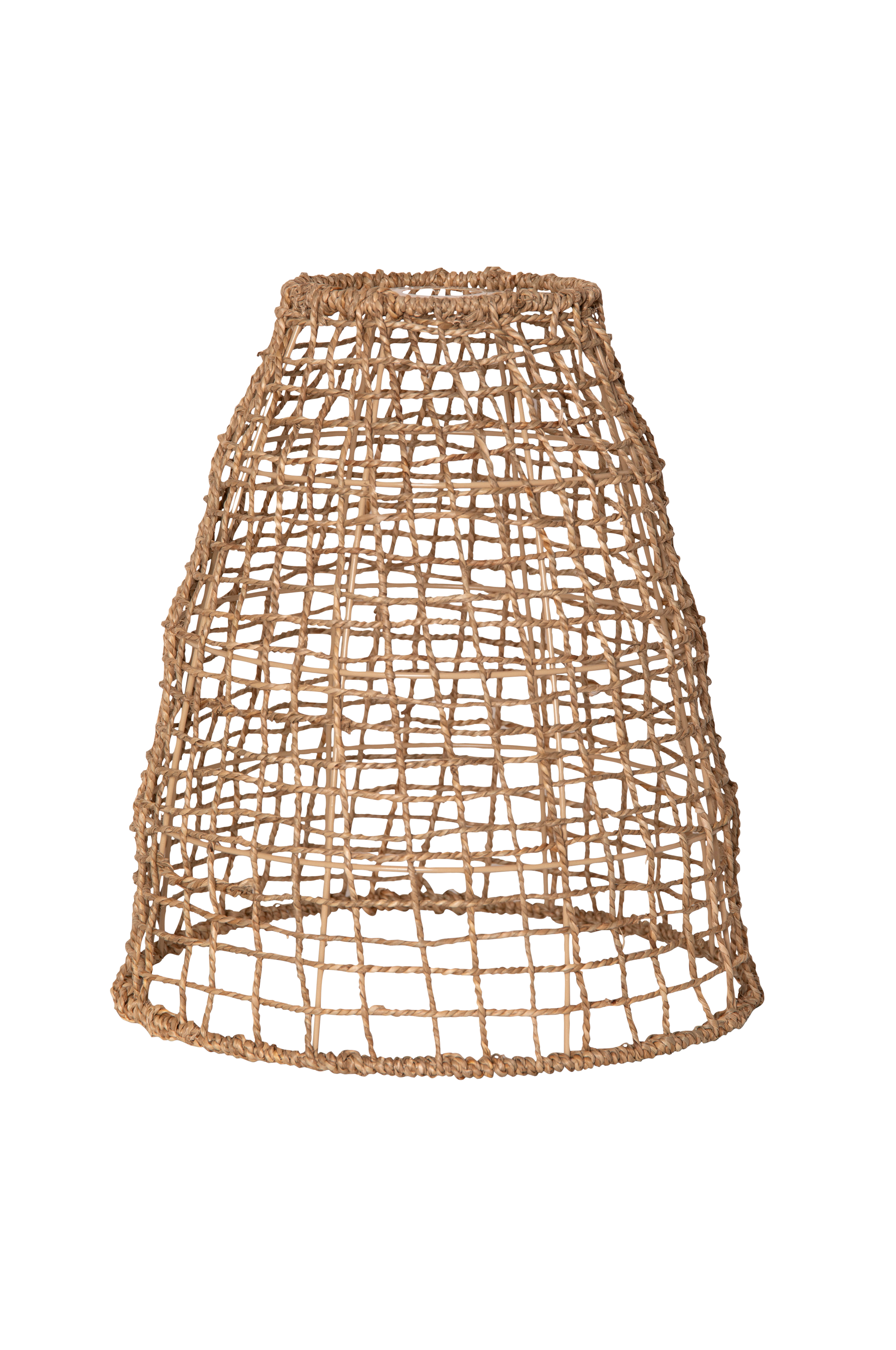 Punottu lampunvarjostin kuivattua meriruohoa, koko 30x33cm. Lampunvarjostin on käsin punottu, mikä antaa jokaiselle tuotteelle ainutlaatuisen ulkonäön. Pidike on tehty sopimaan e27-johtosarjaan. Sekoita ja sovita ulkokäyttöön tarkoitettujen johtosarjojen ja lamppujen kanssa.