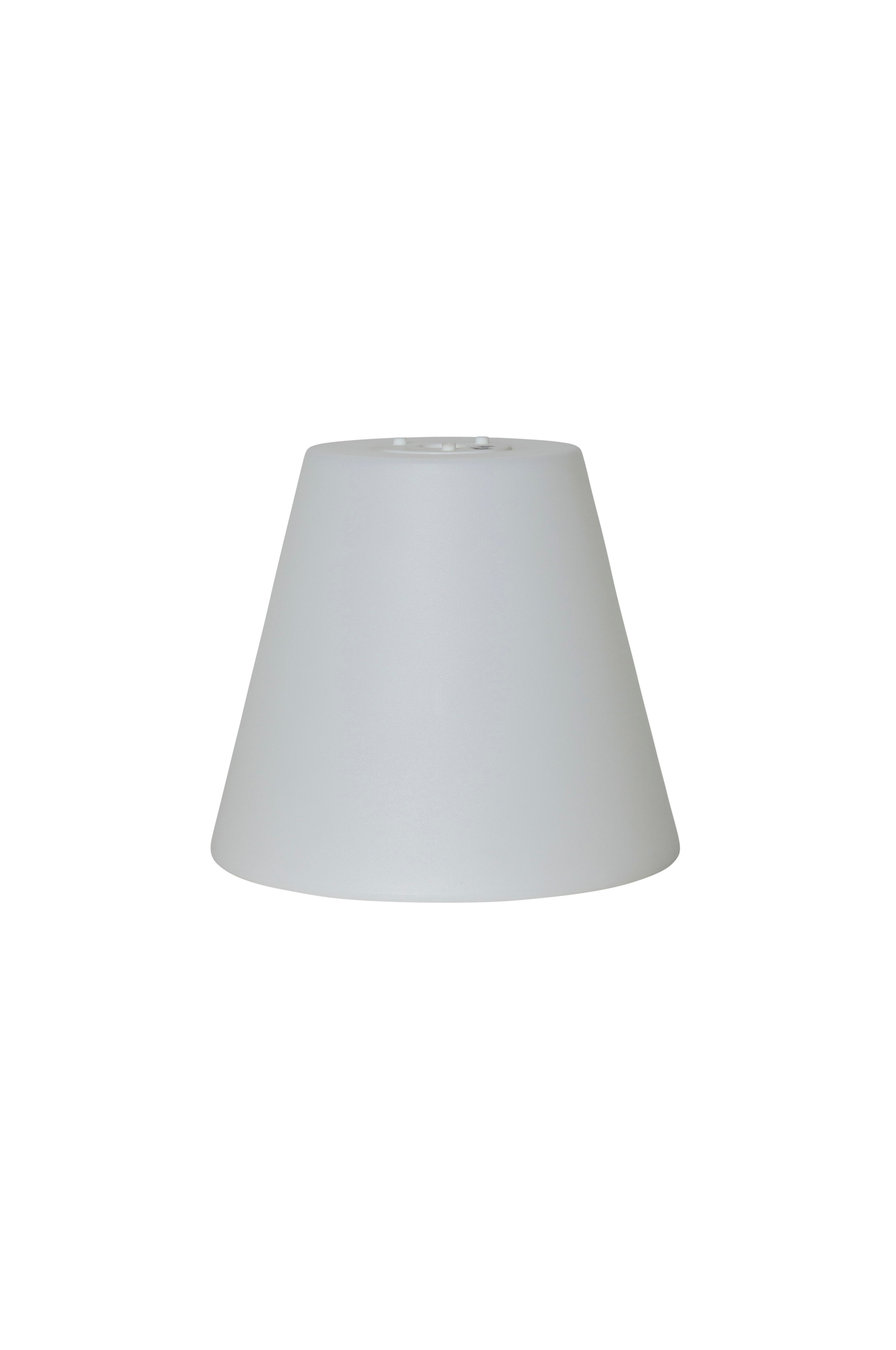 Valkoinen kangasvarjostin ulkokäyttöön.