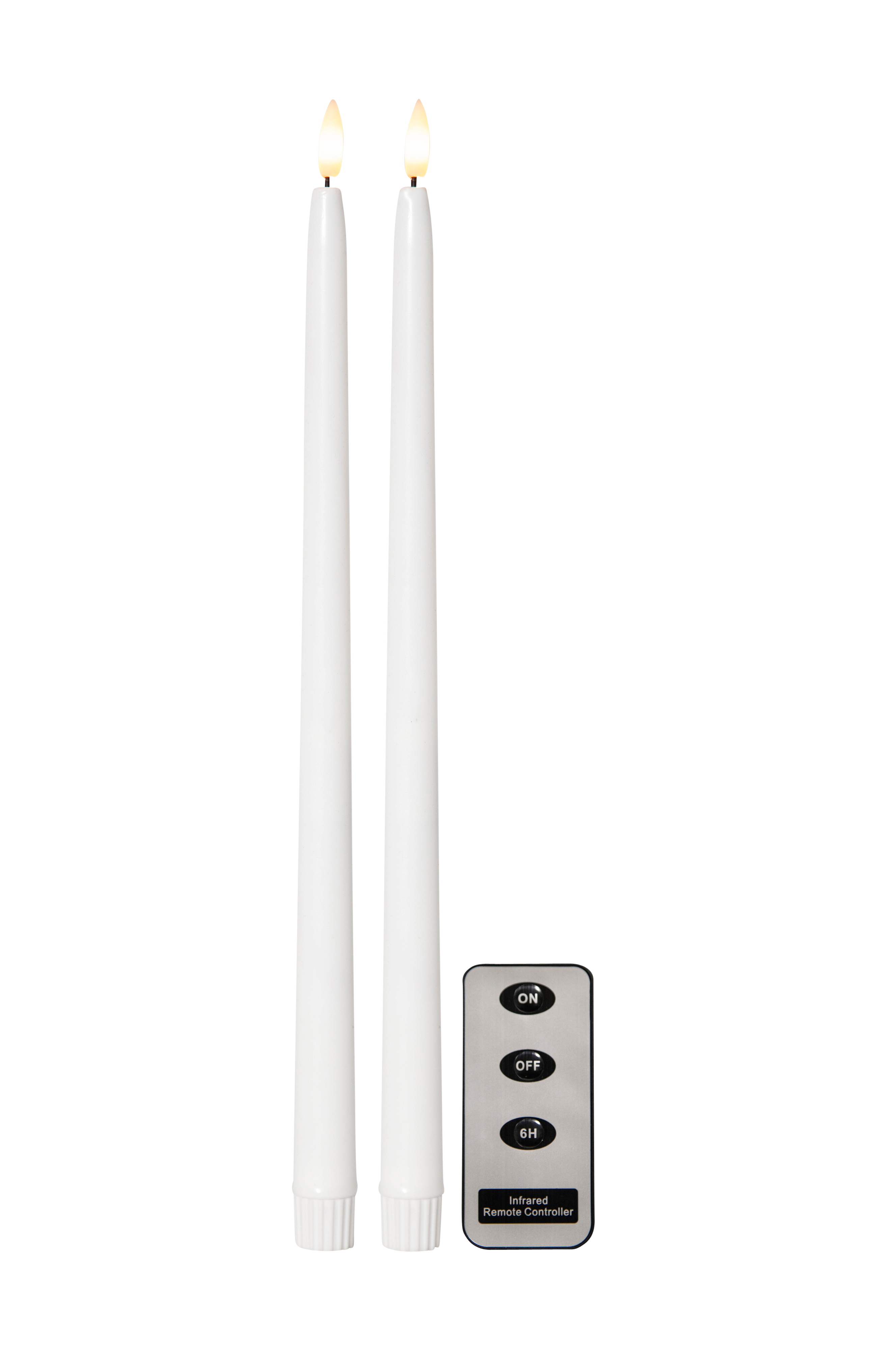 Kaksi antiikkikynttilää, korkeus 38 cm. Sileä pinta ja liekki, joka antaa aidonnäköisen valon ja vaikutelman. Mukana kaukosäädin. Samalla kaukosäätimellä voidaan ohjata enintään viisi settiä (10 kynttilää). Etäisyys maks. 5 m.