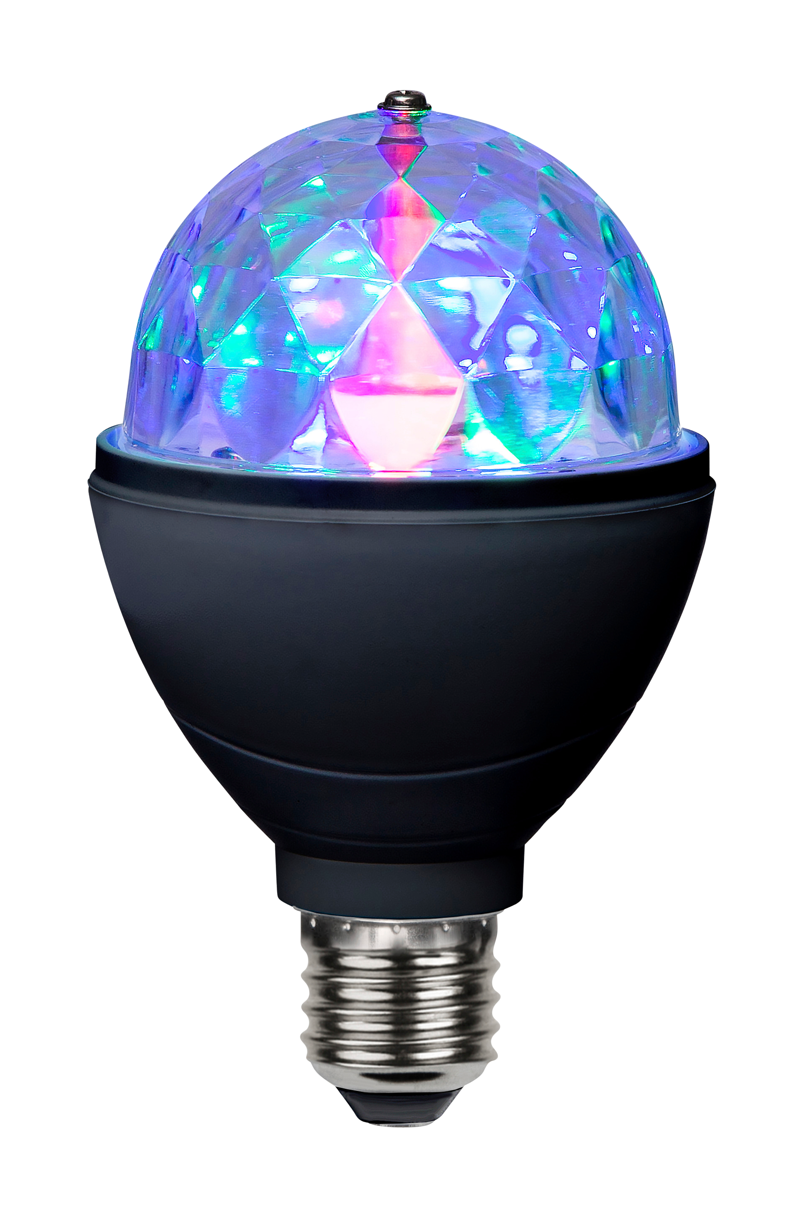 Lampun pyörivä valo luo discotunnelmaa! Lamppu sopii valaisimiin, joissa on E27-lampunpidike, ja siinä on RGB-värit.