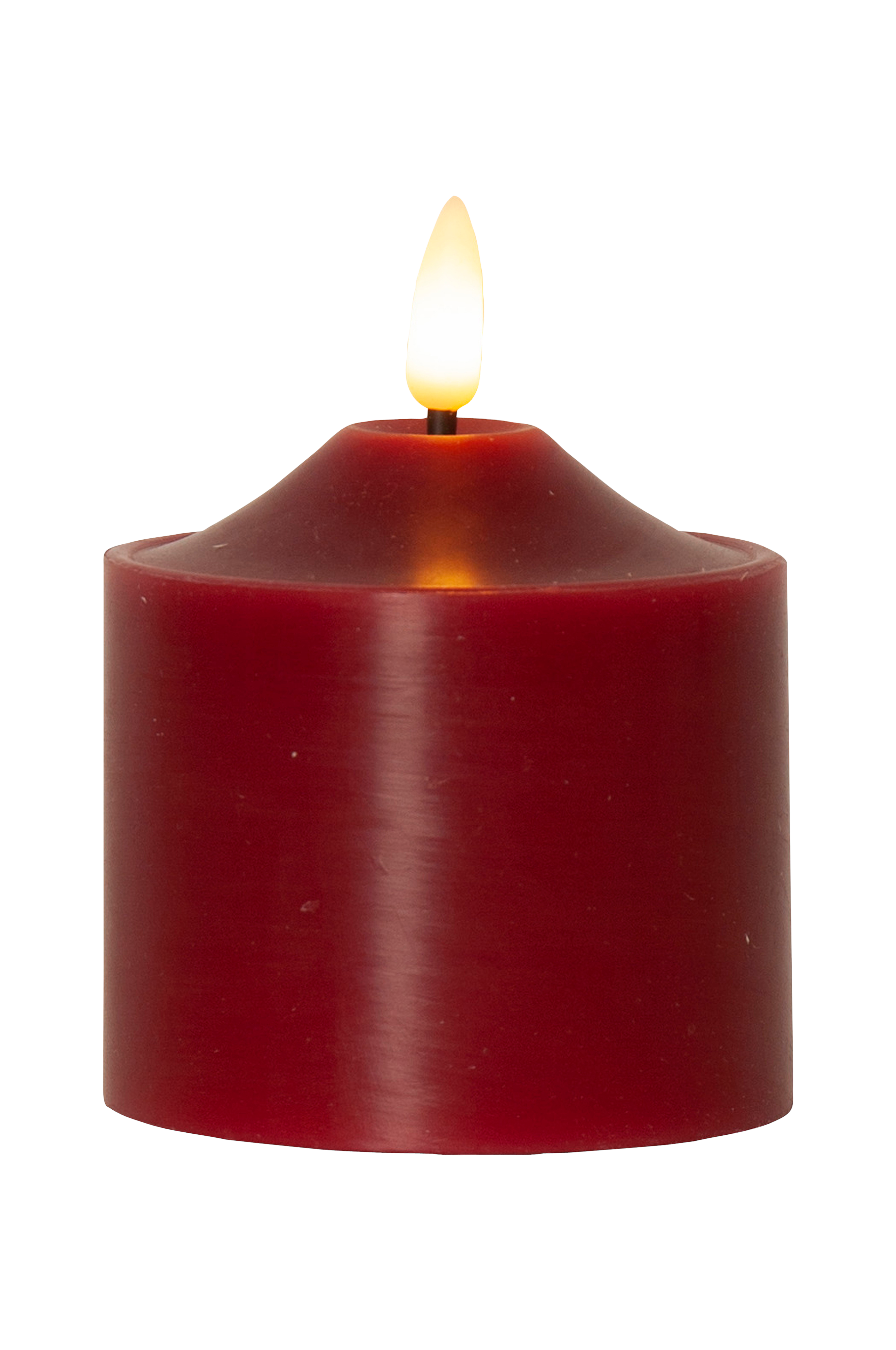 Paristokäyttöinen vahapöytäkynttilä, jossa Flamme-liekki. Kynttilän halkaisija on n. 7,5 cm ja korkeus liekin kanssa n. 9,5 cm. Paristokäyttöinen kynttilä on kaunis koriste yksinään sekä ryhmässä muiden Flamme-sarjan kynttilöiden kanssa. Siinä on ajastintoiminto ja kun kytkin on ajastintilassa, loistaa kynttilä noin 30 päivää kauniilla ja todentuntuisella lämpimän valkoisella liekillä. Toimii 2 x AA-paristolla, eivät sisälly toimitukseen.