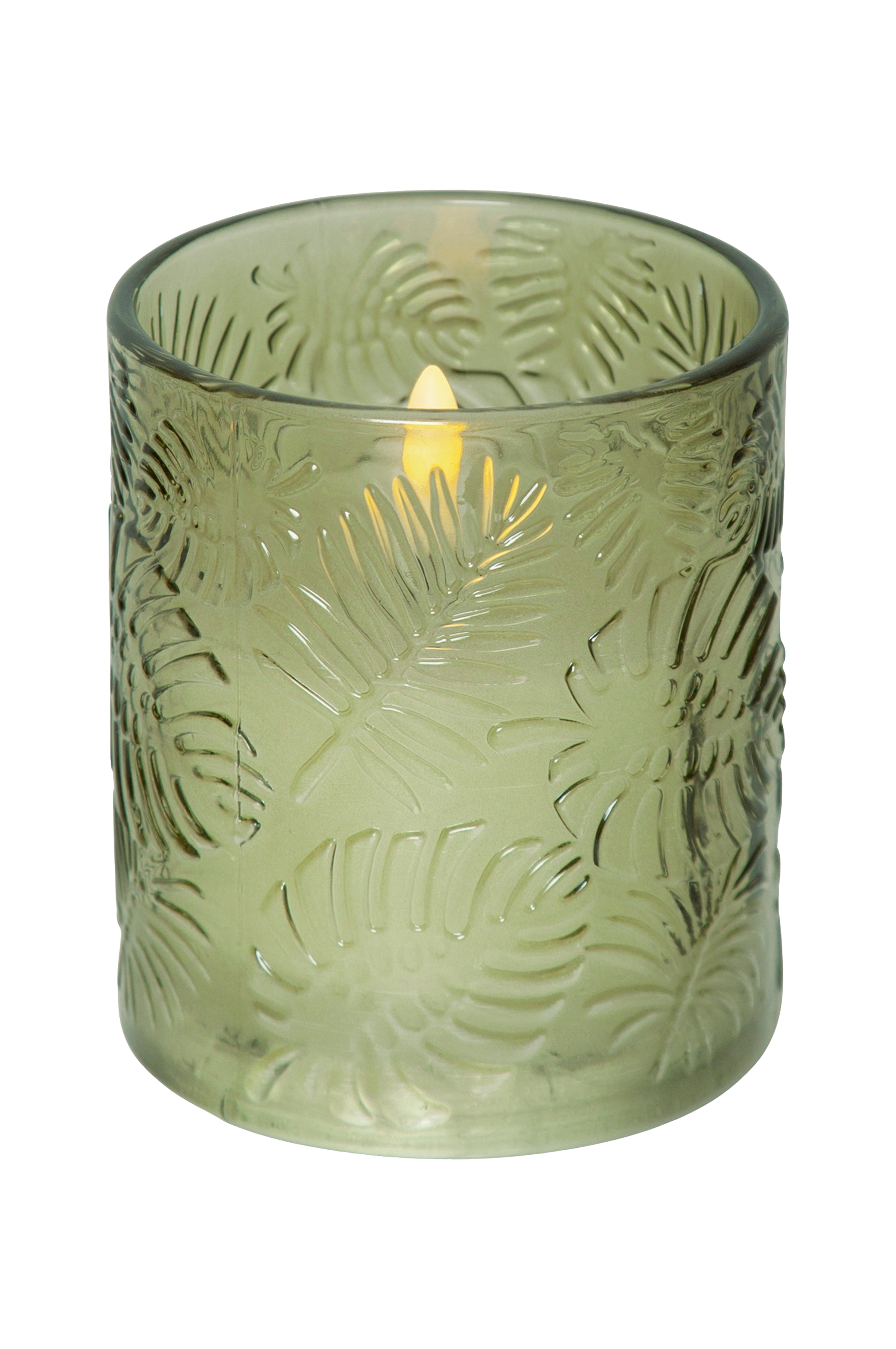Flamme Leaf on valmistettu ruskeasta lasista, jossa on lehtikuvioinen reliefi. Sisäpuolella valkoinen vahakynttilä. Kynttilän koko on noin 8,5 x 10 cm. Paristokäyttöinen kynttilä on kaunis koriste yksinään sekä ryhmässä muiden Flamme-sarjan kynttilöiden kanssa. Siinä on ajastintoiminto ja kun kytkin on ajastintilassa, loistaa kynttilä noin 30 päivää kauniilla ja todentuntuisella lämpimän valkoisella liekillä. Toimii 2 x AA-paristolla, eivät sisälly toimitukseen.