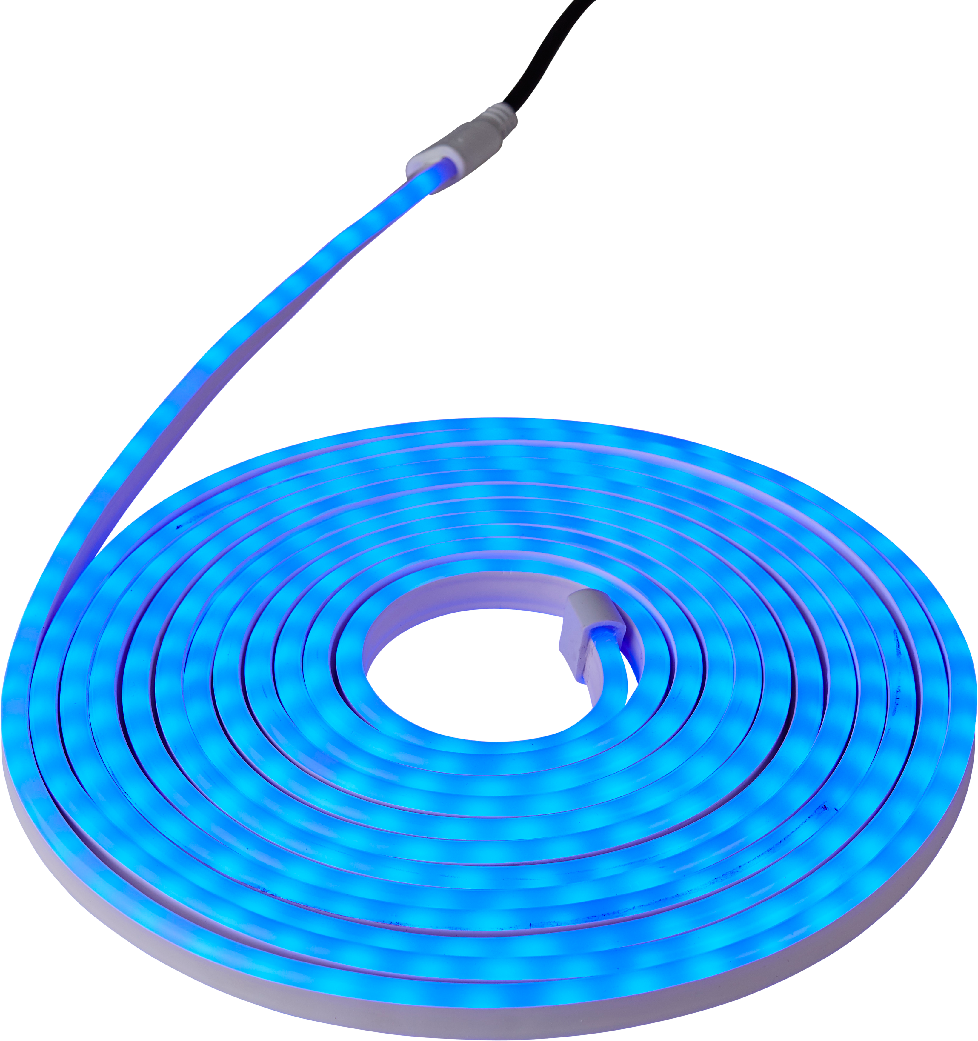 Joustava, litteä valokaapeli koristeeksi. Sisä- ja ulkokäyttöön. Valokaapelissa on 360 LED-valonlähdettä.
