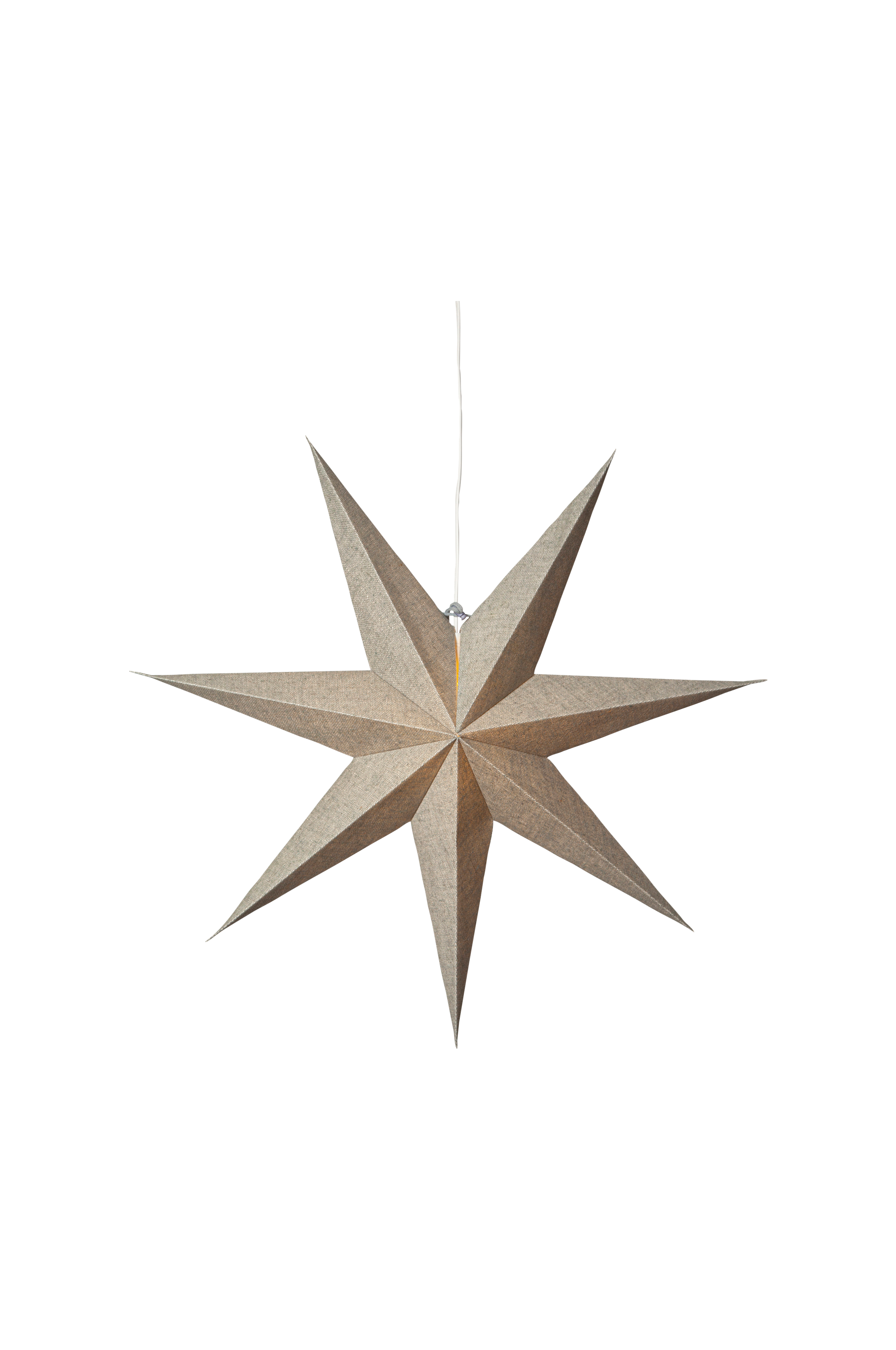 Kangaspintainen tähti on ihastuttavan luonnollinen. Modernin tähden voi ripustaa ikkunaan tai seinälle. Kaunis koriste luo miellyttävää joulutunnelmaa. Tilaa myös johtosarja ja valonlähde, niin saat valaisevan tähden.