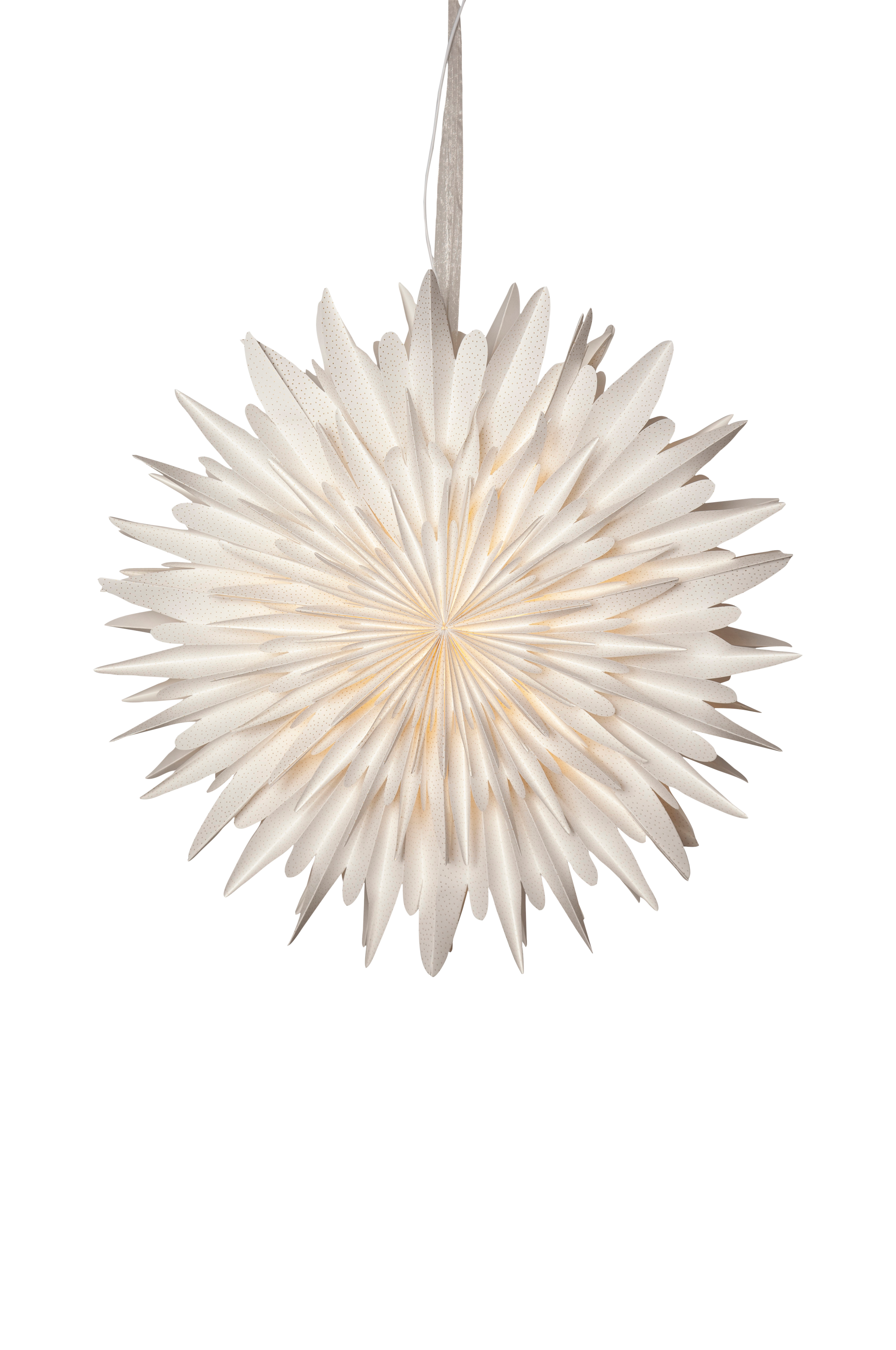 Upea paperitähti on valmistettu kolmikerroksisesta paperista. Paperitähdessä on pyöristetyt sakarat, mikä saa sen näyttämään talviselta. Mukana tyylikäs nauha tähden ripustamiseen. Tähti luo kotiin erityisen joulutunnelman. Voidaan ripustaa sekä ikkunaan että seinälle. Tilaa myös johtosarja ja valonlähde, niin saat valaisevan tähden.