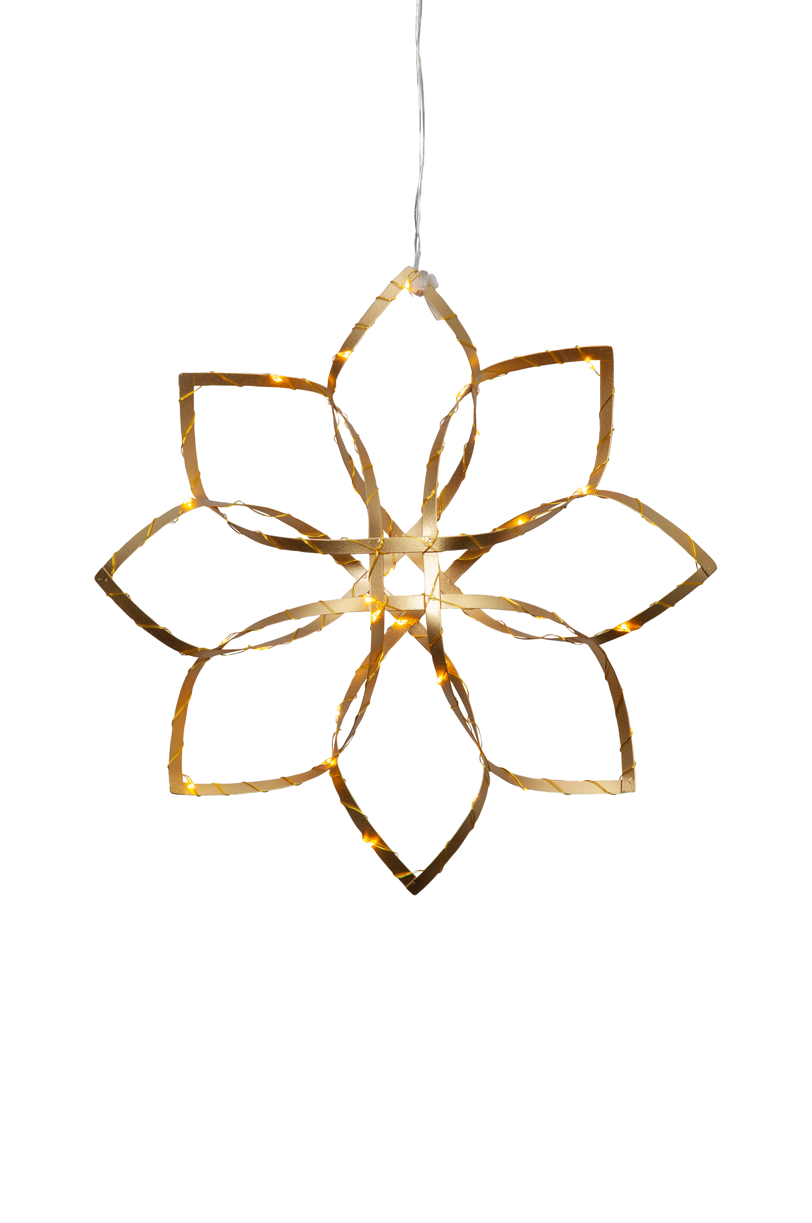 Kaunis tähti metallinauhassa. Sisäkäyttöön. Tähdessä on 36 lämpimän valkoista LED-lamppua. Kaunis ikkunaan ripustettava tai seinää vastaan asetettava adventti- ja joulukoriste.