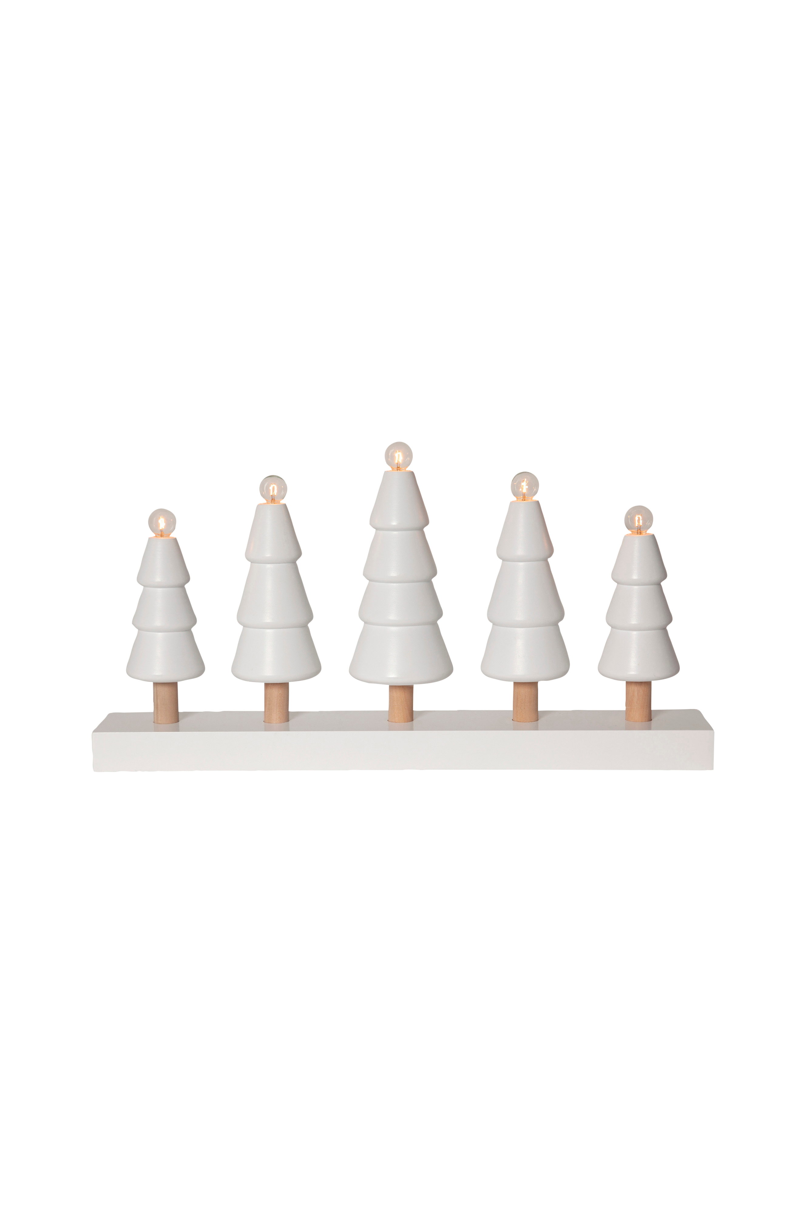 Kuusimetsän muotoinen puinen sähkökynttelikkö. Valkoiset kuuset ja puunväriset rungot. Sähkökynttelikkö luo lämmintä ja viihtyisää joulutunnelmaa. Sijoita ikkunalaudalle, hyllylle tai senkin päälle. Miellyttävä joulukoriste voi olla esillä niin kauan kuin haluat.