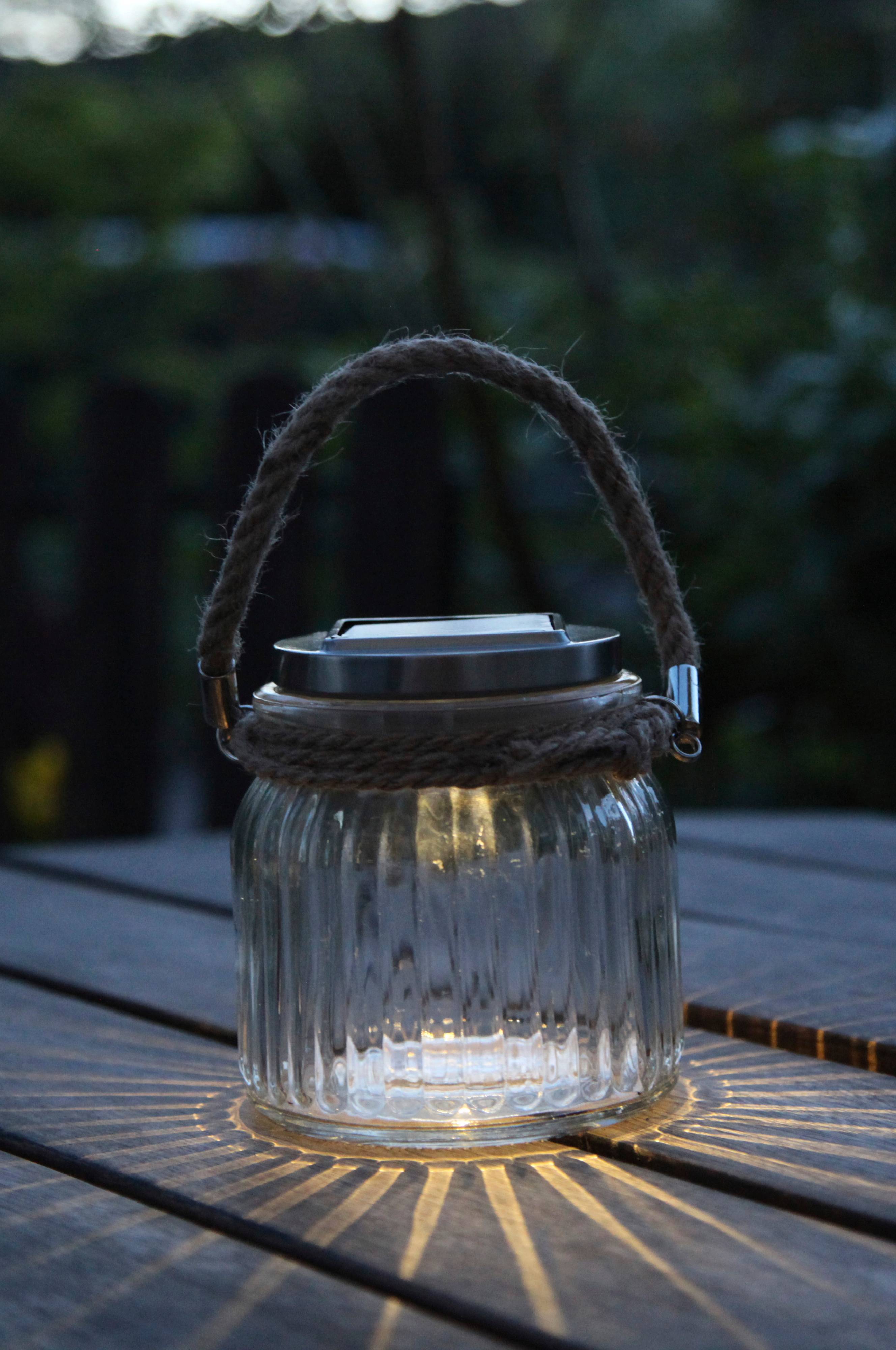Koristeellinen aurinkokennolyhty, jossa on narukahva. Lyhdyssä on 1 LED-valo, joka antaa kauniin valon pimeydessä. Tosi hieno koriste pöydälle.