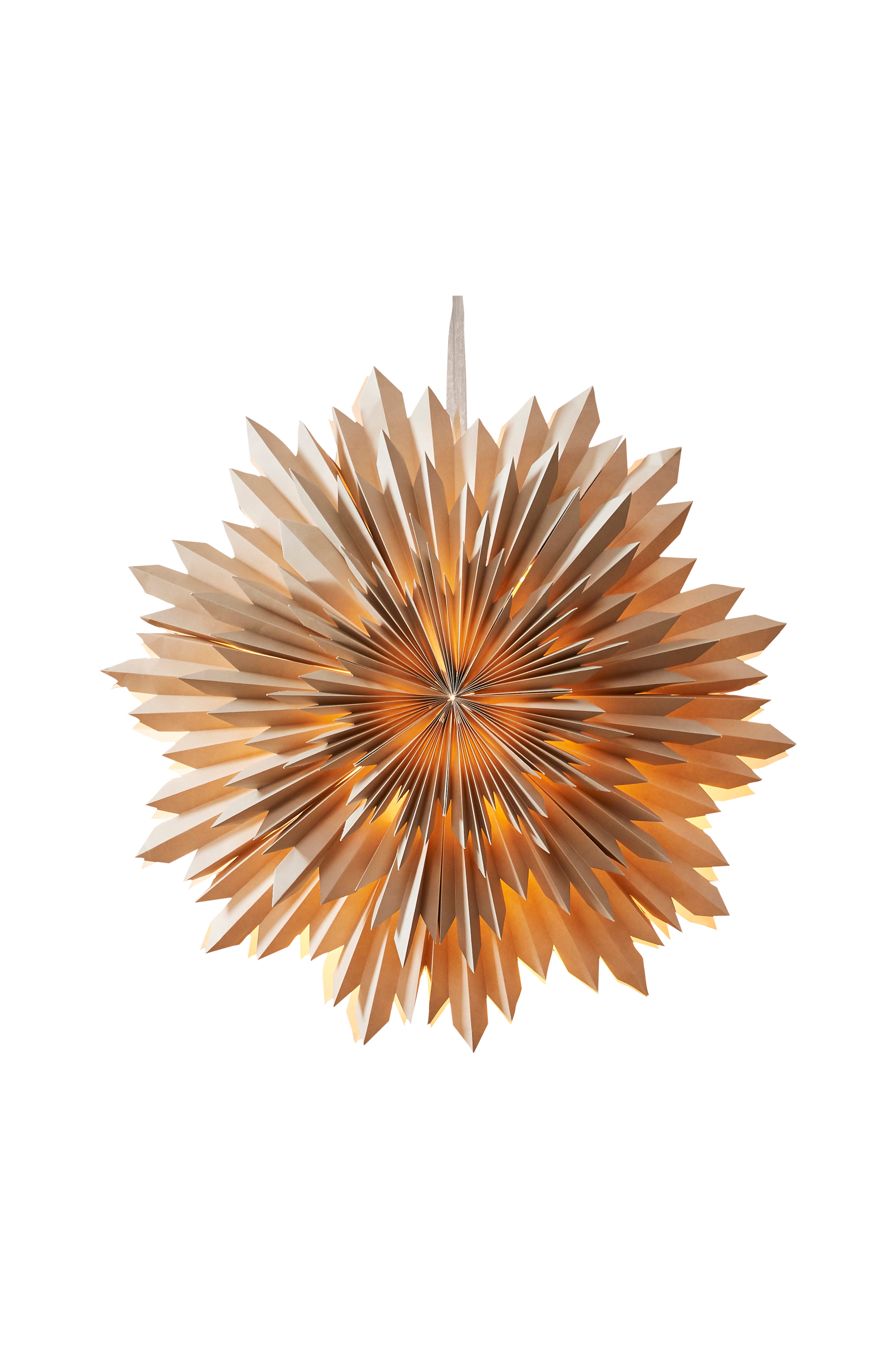 Fantastinen valkoinen paperitähti, joka on tehty kolmesta rypistyneestä paperikerroksesta. Hieman epätasainen ääriviiva antaa talvisen tunnelman. Mukana on tyylikäs nauha, joka helpottaa tähden ripustamista. Tähti levittää tunnelmaa ja antaa kotiin erityisen jouluisen tunnelman. Voidaan ripustaa sekä eteen että seinää vasten. Yhdistä valitsemasi narun kanssa.