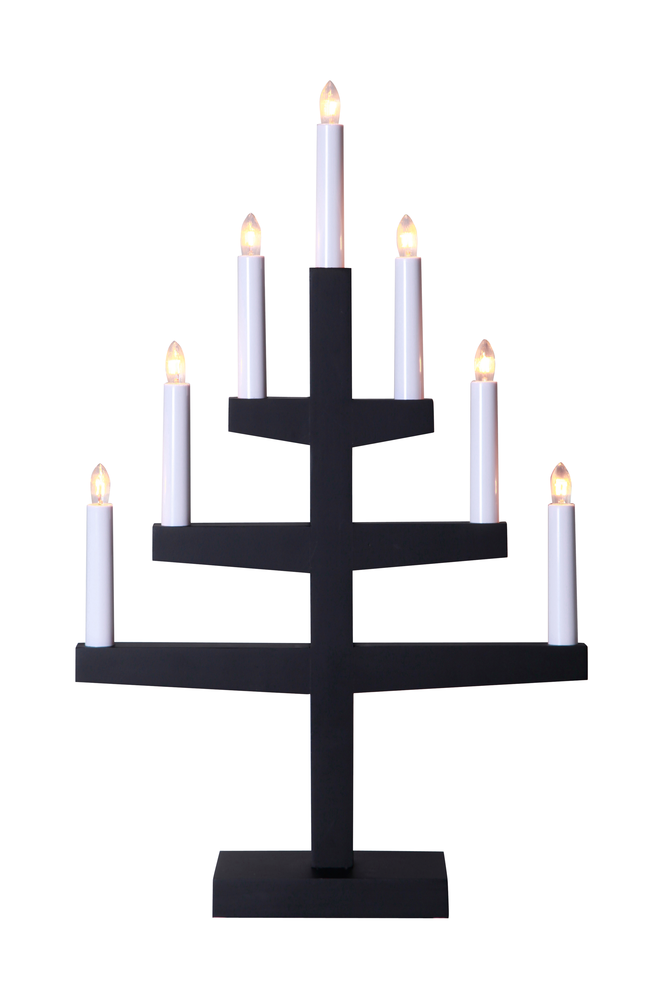 Puinen Trapp-sähkökynttelikkö. Korkeus 53,5 cm. Syvyys 3 cm. Leveys 33,5 cm. 1,8 m:n virtajohto, jossa katkaisin.