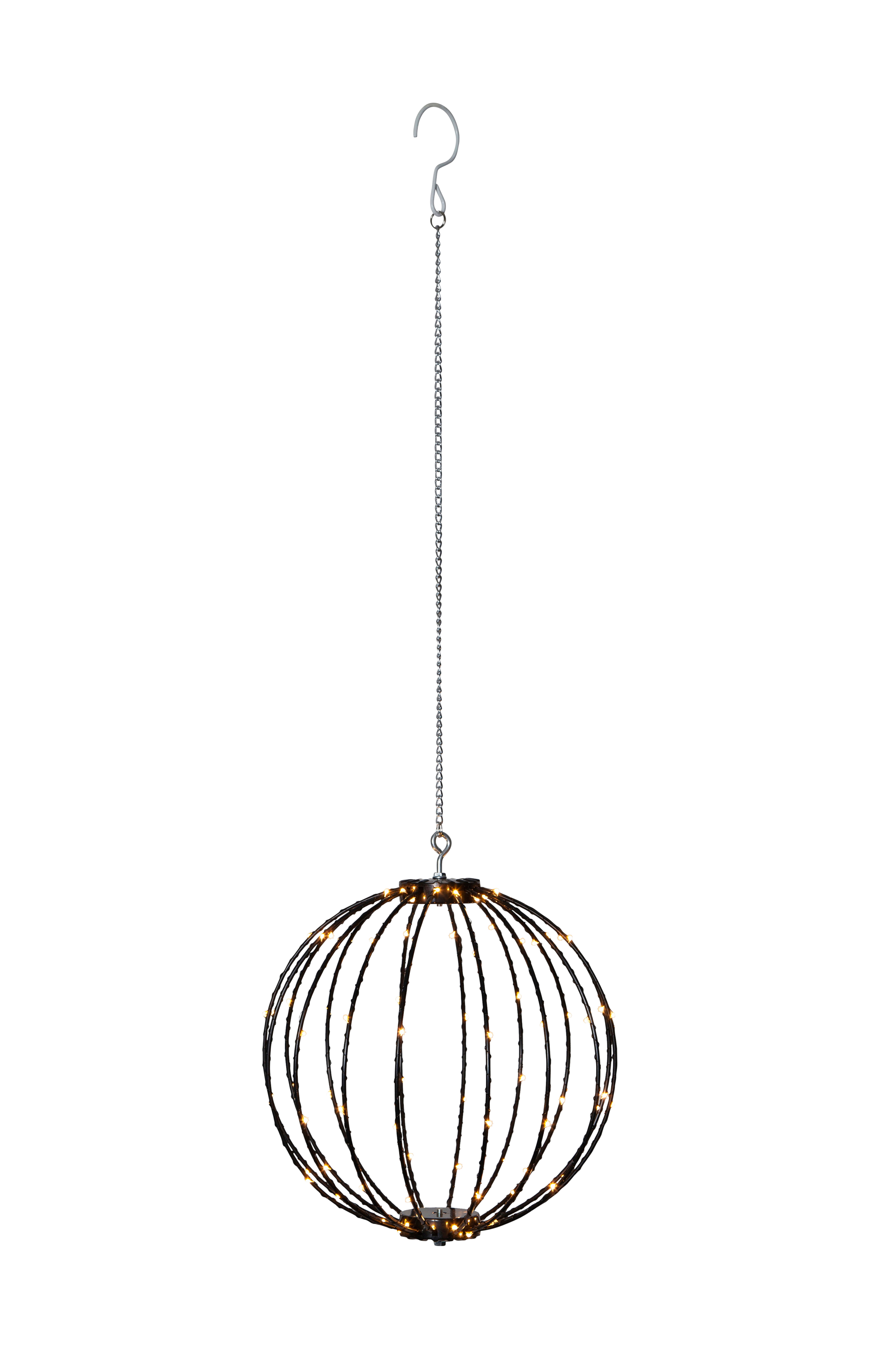 Koristeellinen kokoontaitettava ripustettava koriste terassille ja puutarhaan. Sopii myös sisäkäyttöön. Ketju ja koukku se mukana helppokäyttöisyyttä varten. Koko 30 cm, 96 lämpimänvalkoista lediä, takaa-ajotoiminto 8 eri toiminnolla. Liitäntäkaapelin pituus on 500cm.
